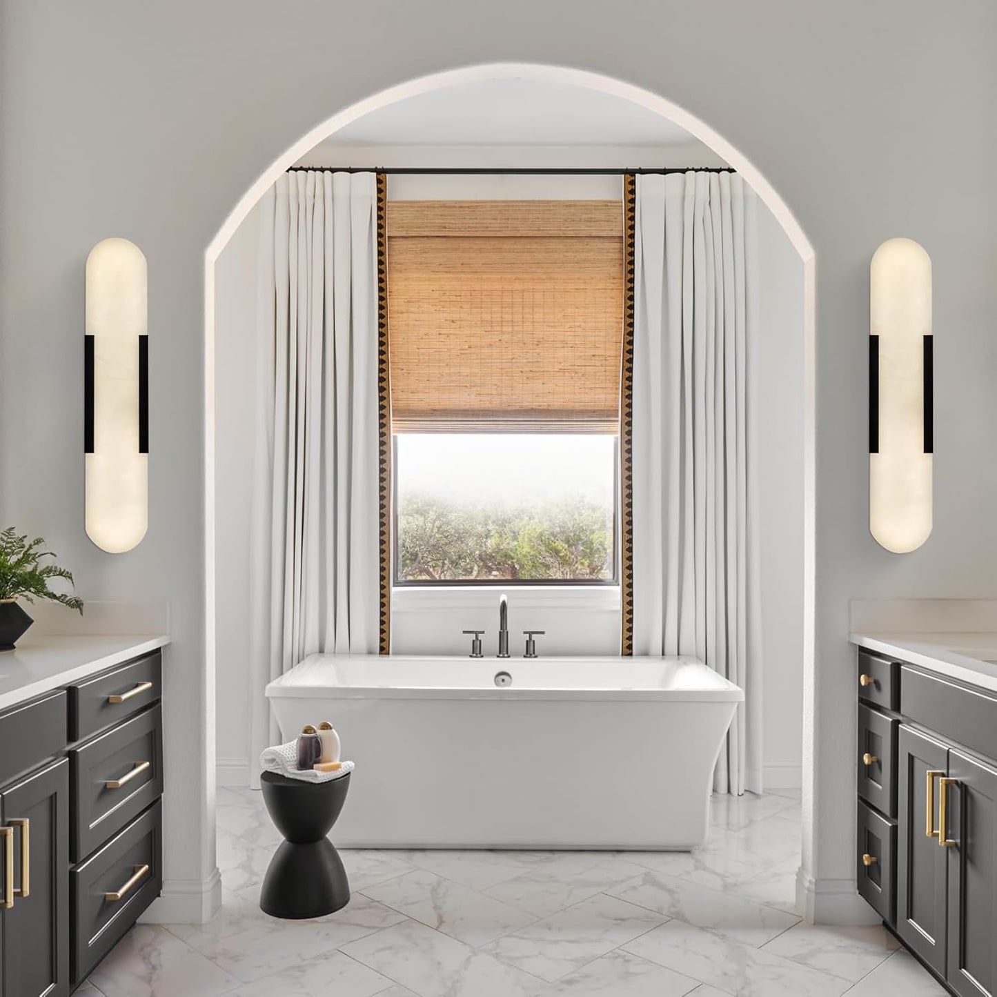 Add timeless elegance and soft illumination with the Modern Alabaster Wall Sconce. Natural Spanish alabaster and brass or black finishes create a unique, artistic glow for any room.