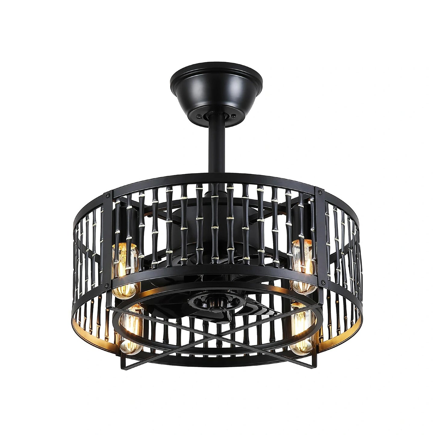 18-Inch Modern Black Caged Ceiling Fan with Remote Control
