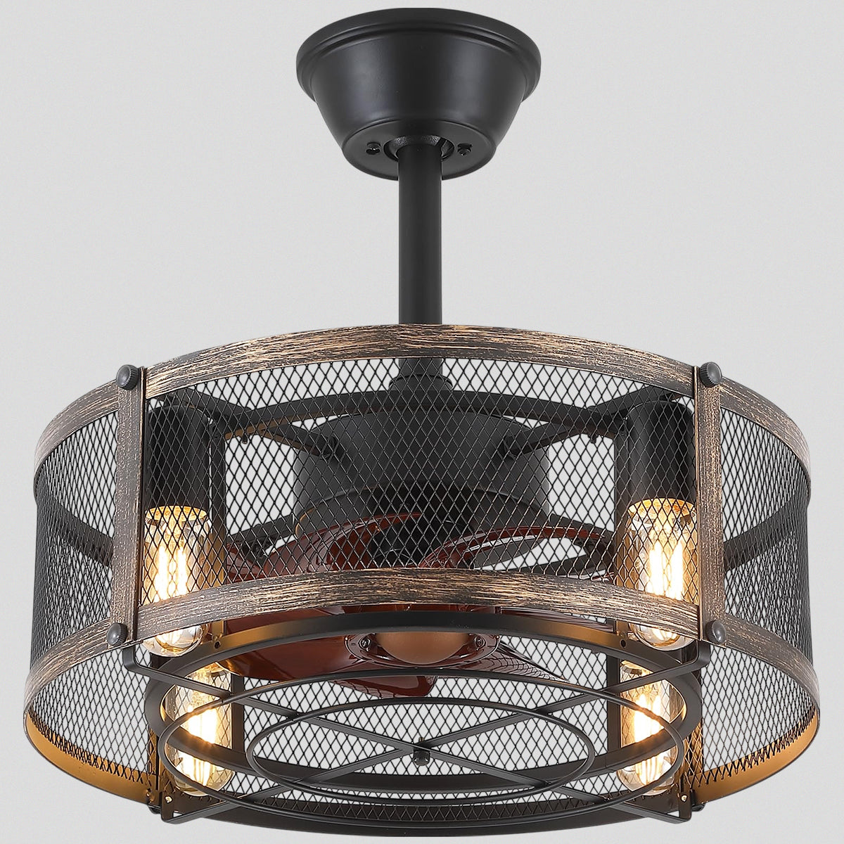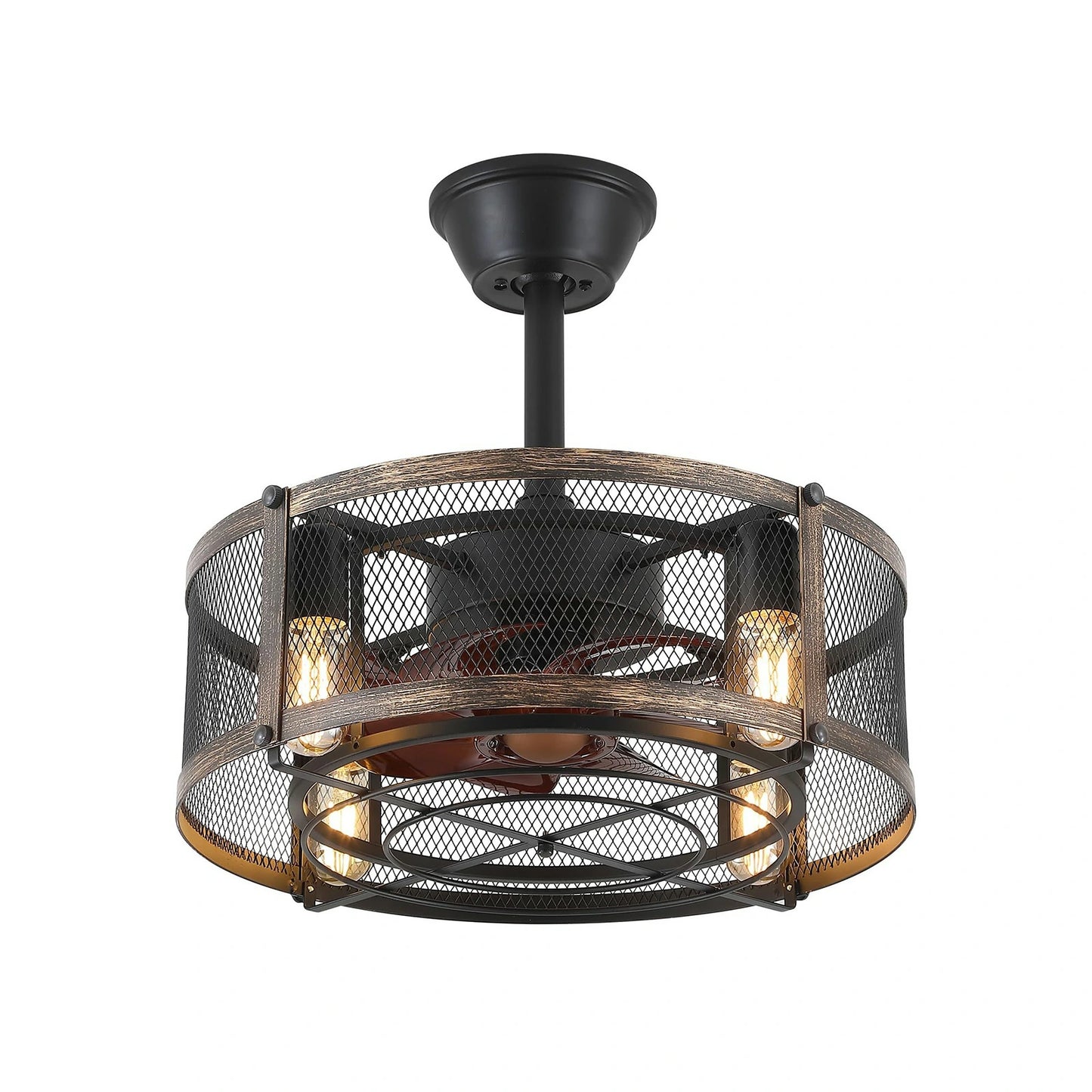 Crafted with a sturdy metal frame and cage design, this ceiling fan combines modern industrial style with farmhouse charm. The black ABS blades provide durability and smooth airflow, while the open-frame cage with wood-grain detailing enhances its visual appeal.