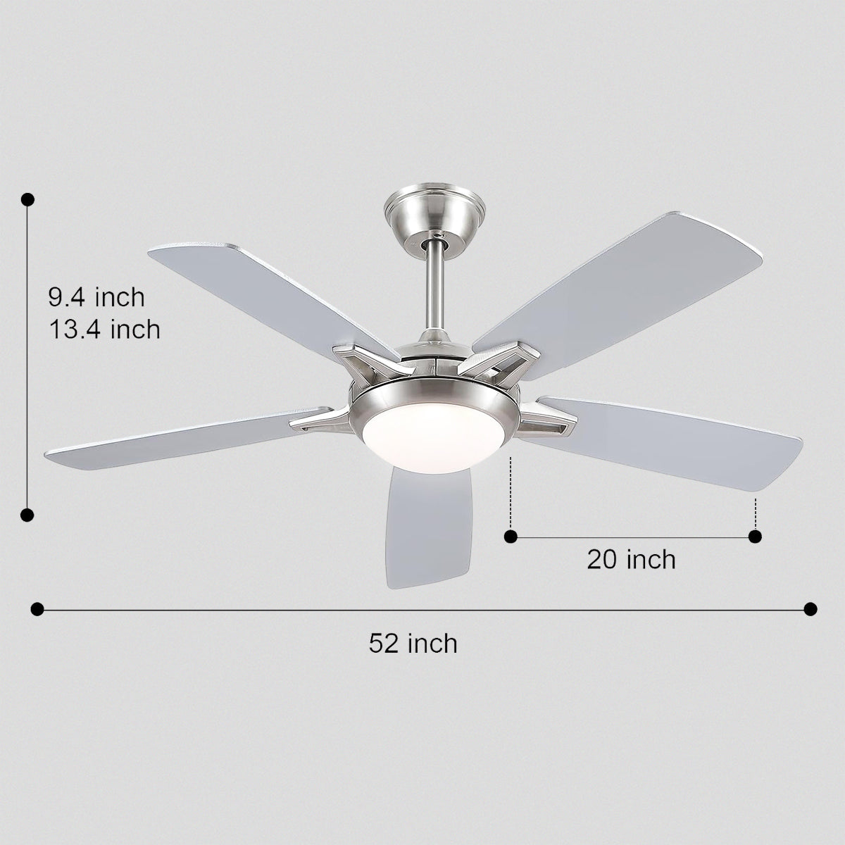 Modern 52-Inch Dual-Finish Wood Ceiling Fan with LED Light and Remote