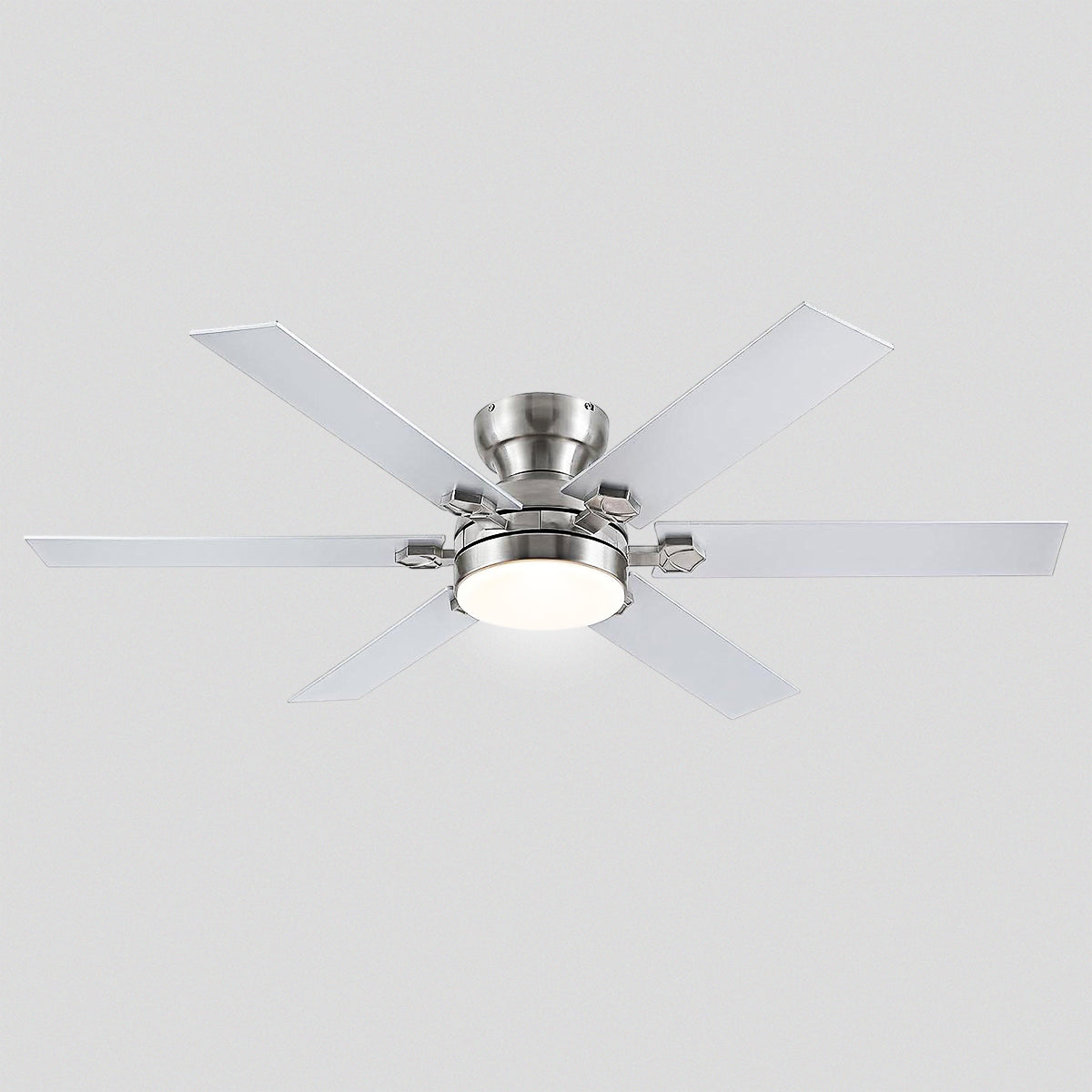 This flush mount ceiling fan blends modern design, powerful airflow, and smart lighting. Perfect for bedrooms, living rooms, and low-ceiling spaces, it offers whisper-quiet comfort and convenient dual control via remote or mobile app.