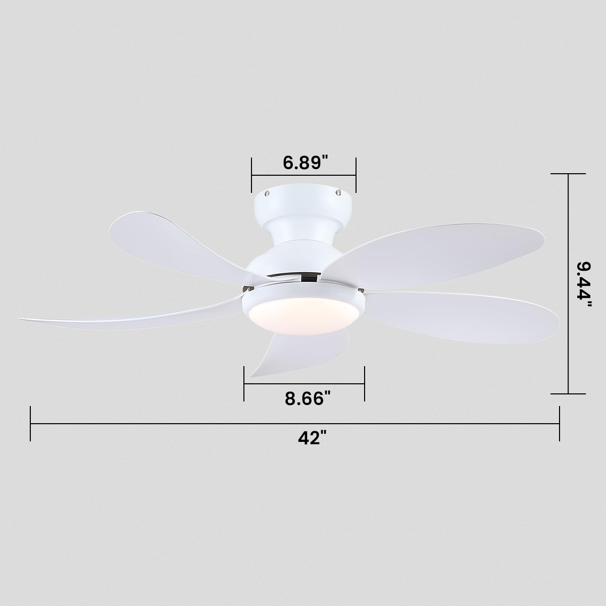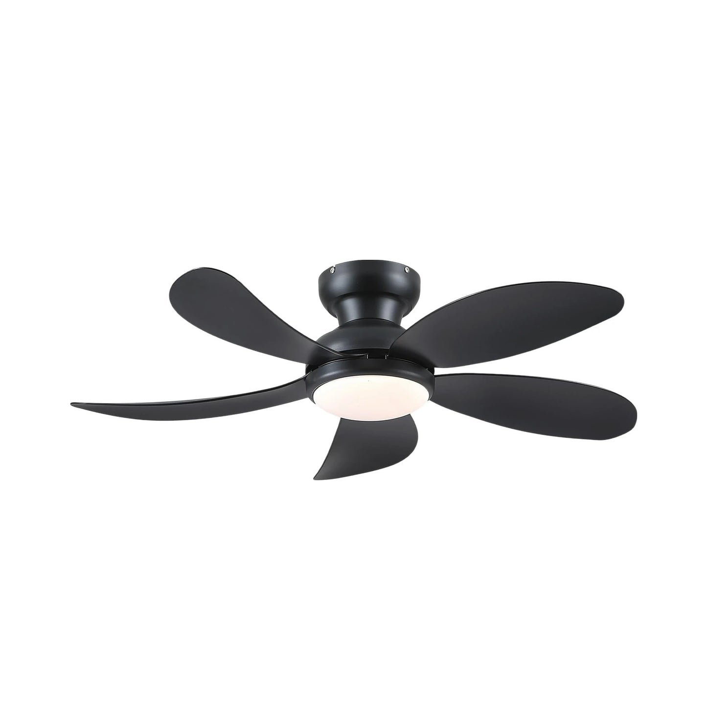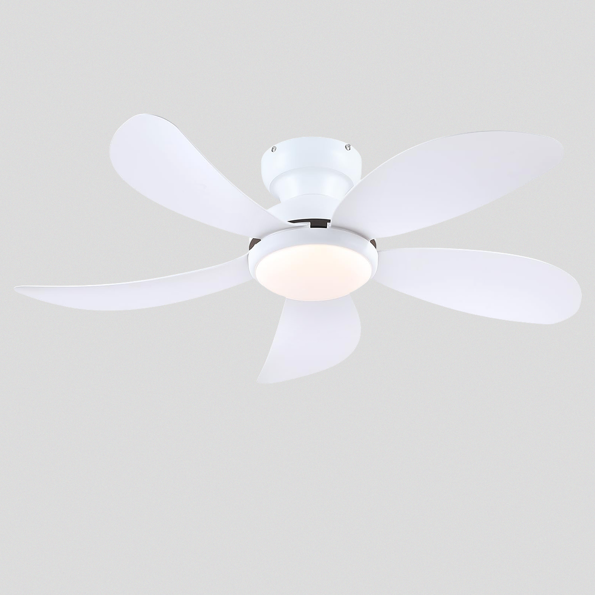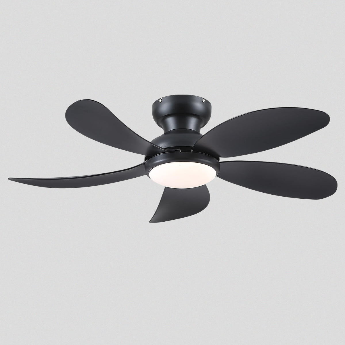 Modern Low-Profile 5-Blade Plastic Ceiling Fan with Dimmable LED and Remote