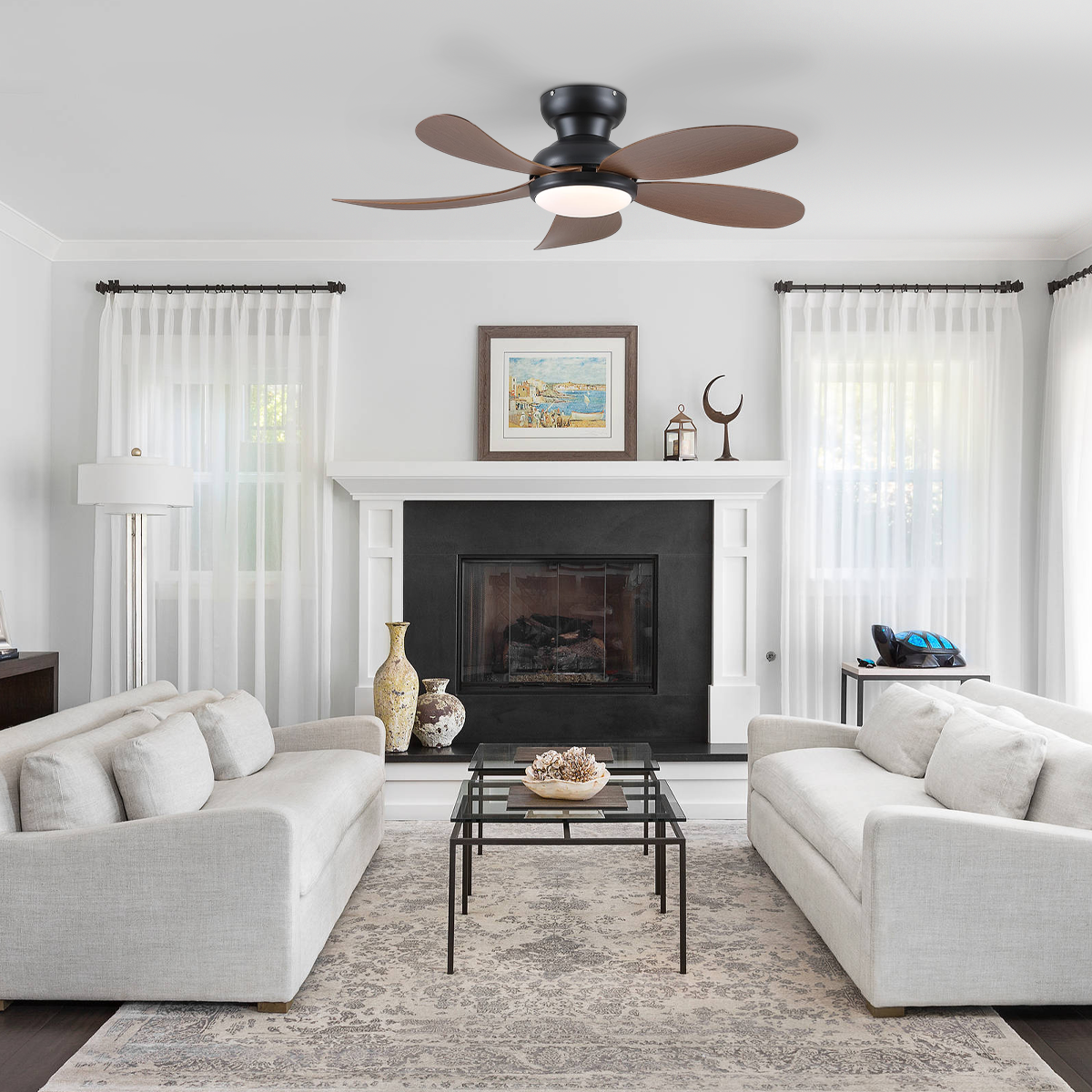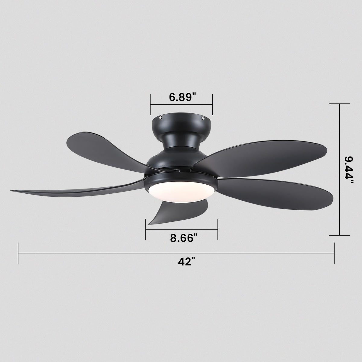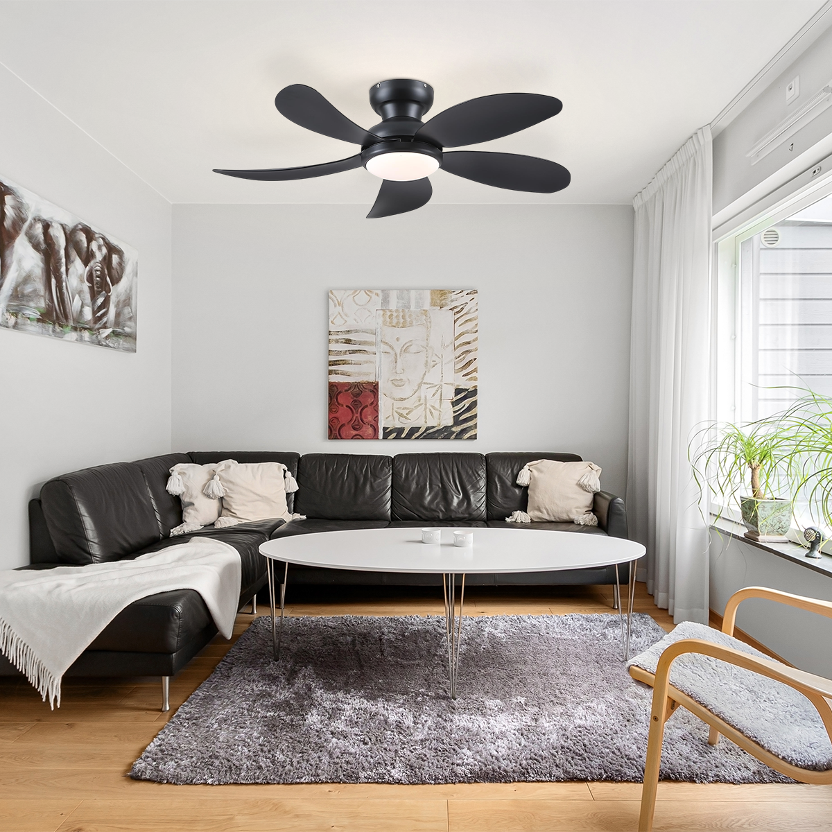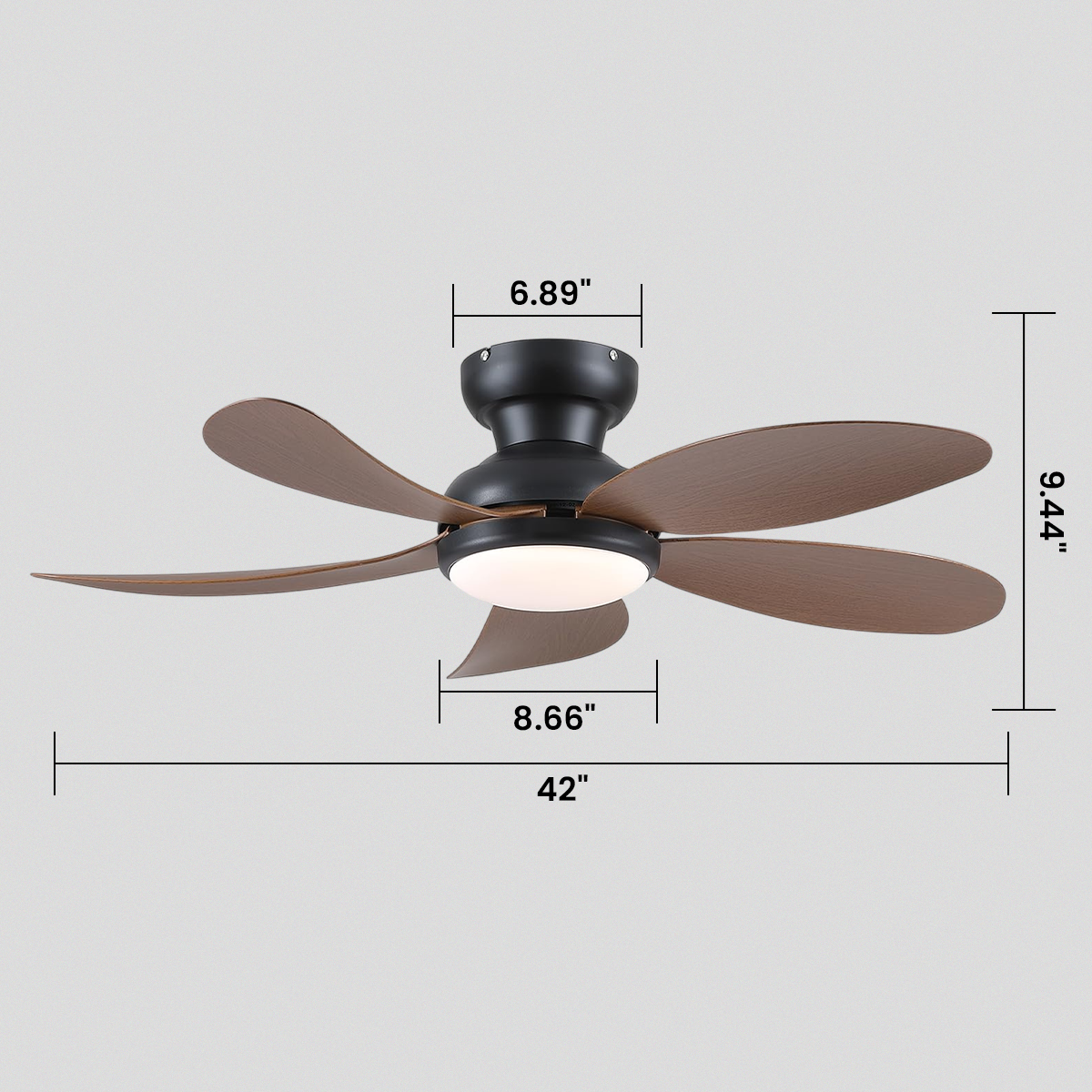 Modern Low-Profile 5-Blade Plastic Ceiling Fan with Dimmable LED and Remote