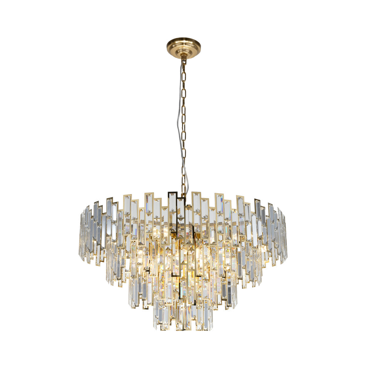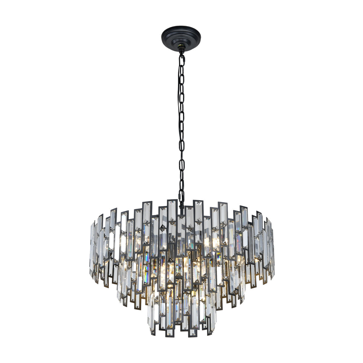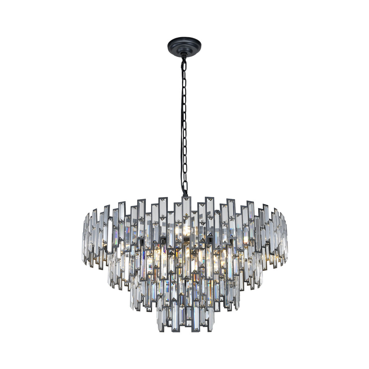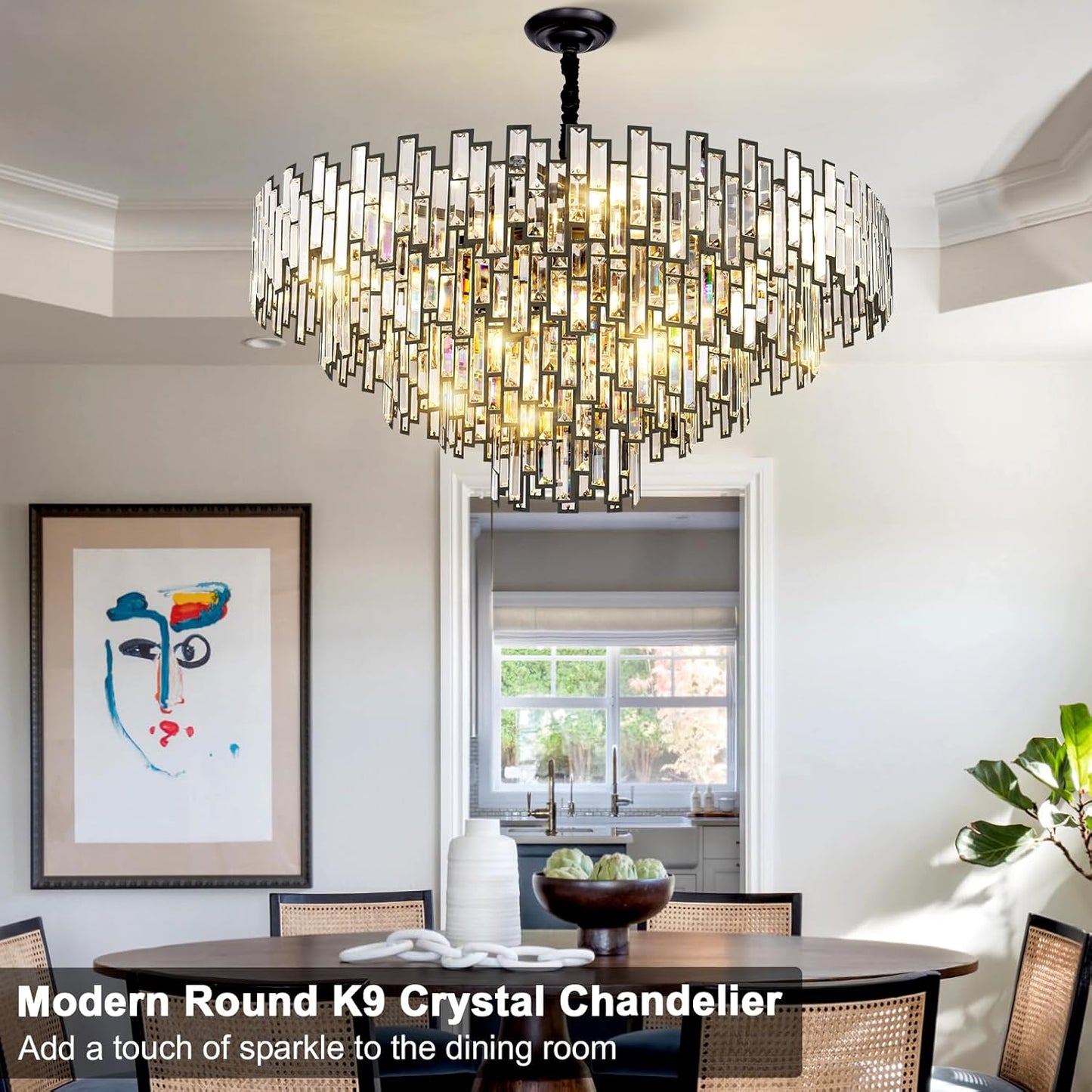 Crafted with a hand-built metal frame and precision-cut K9 crystal, this chandelier combines durability with dazzling brilliance. The brushed metal finish provides a sleek, modern touch to its timeless crystal form.