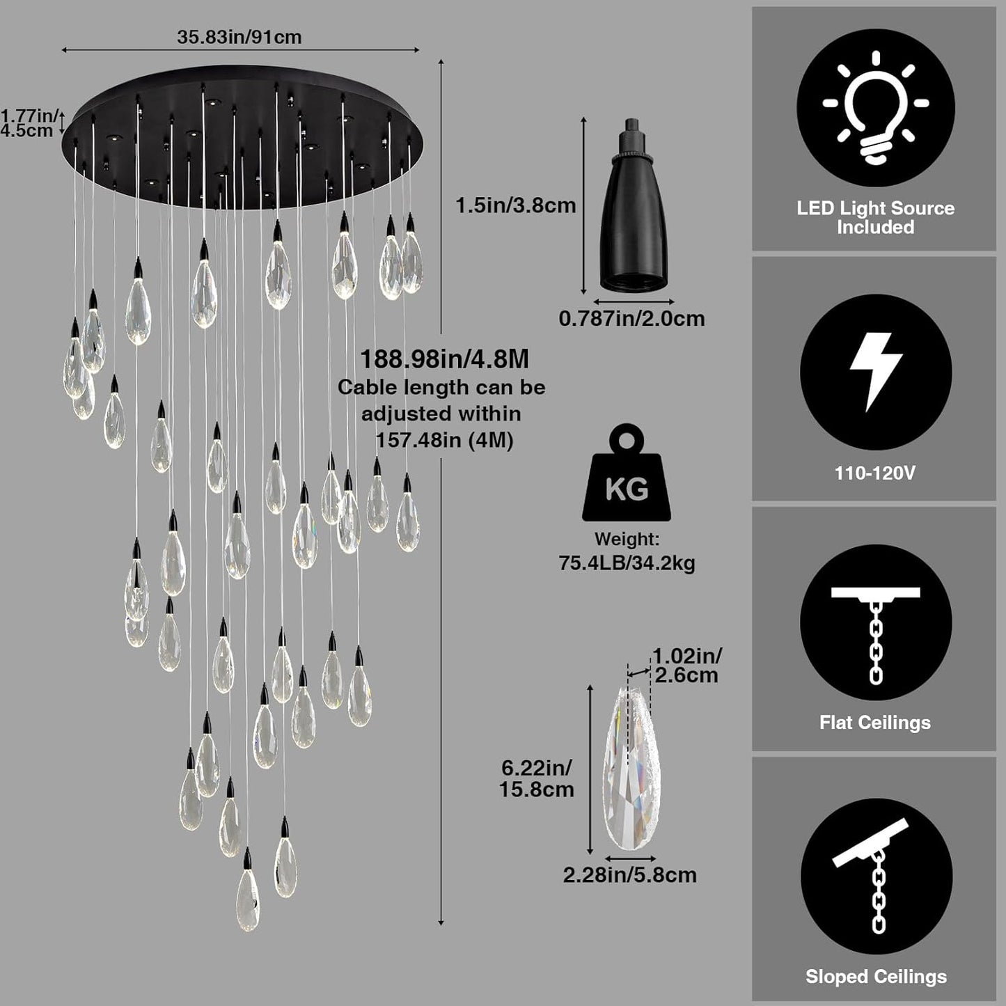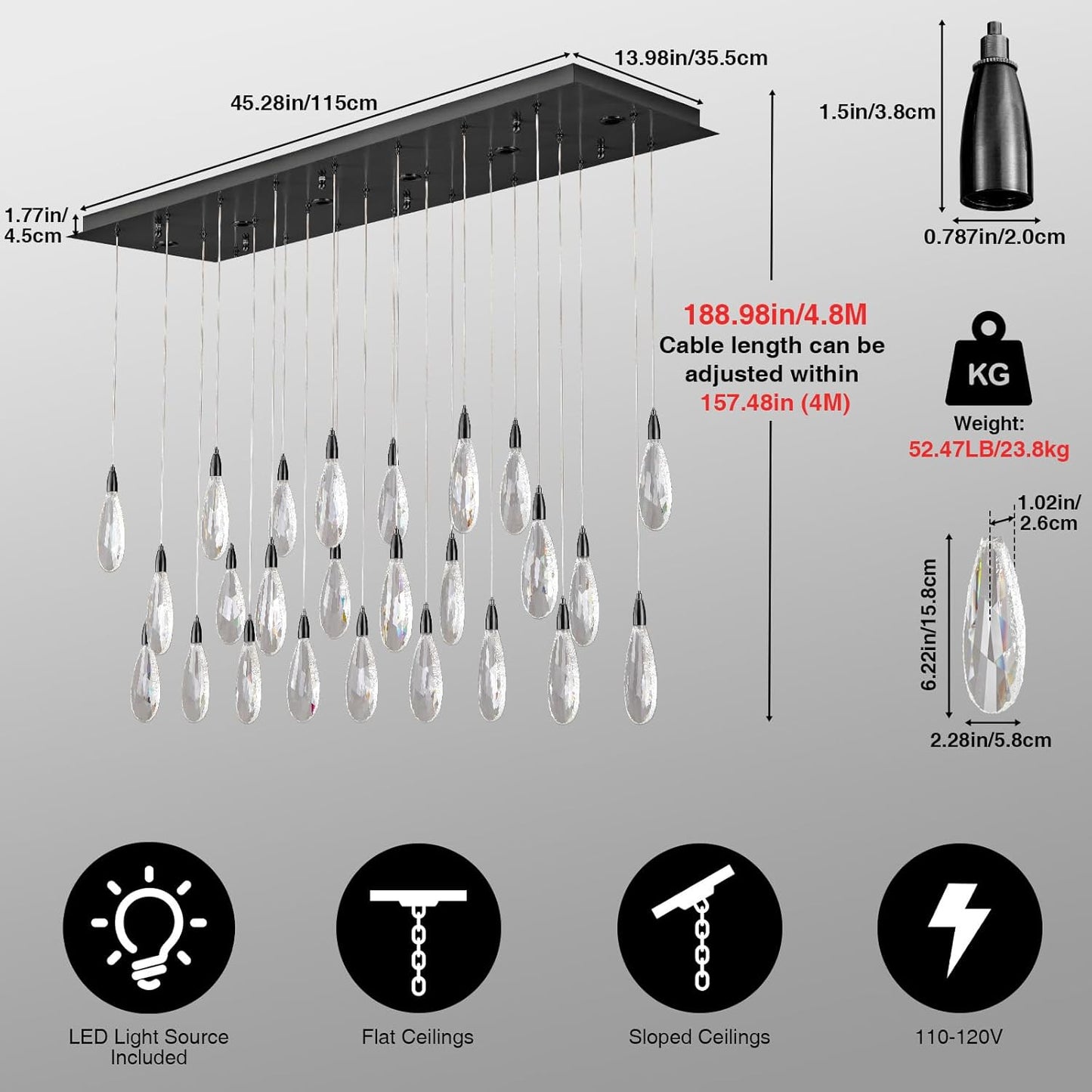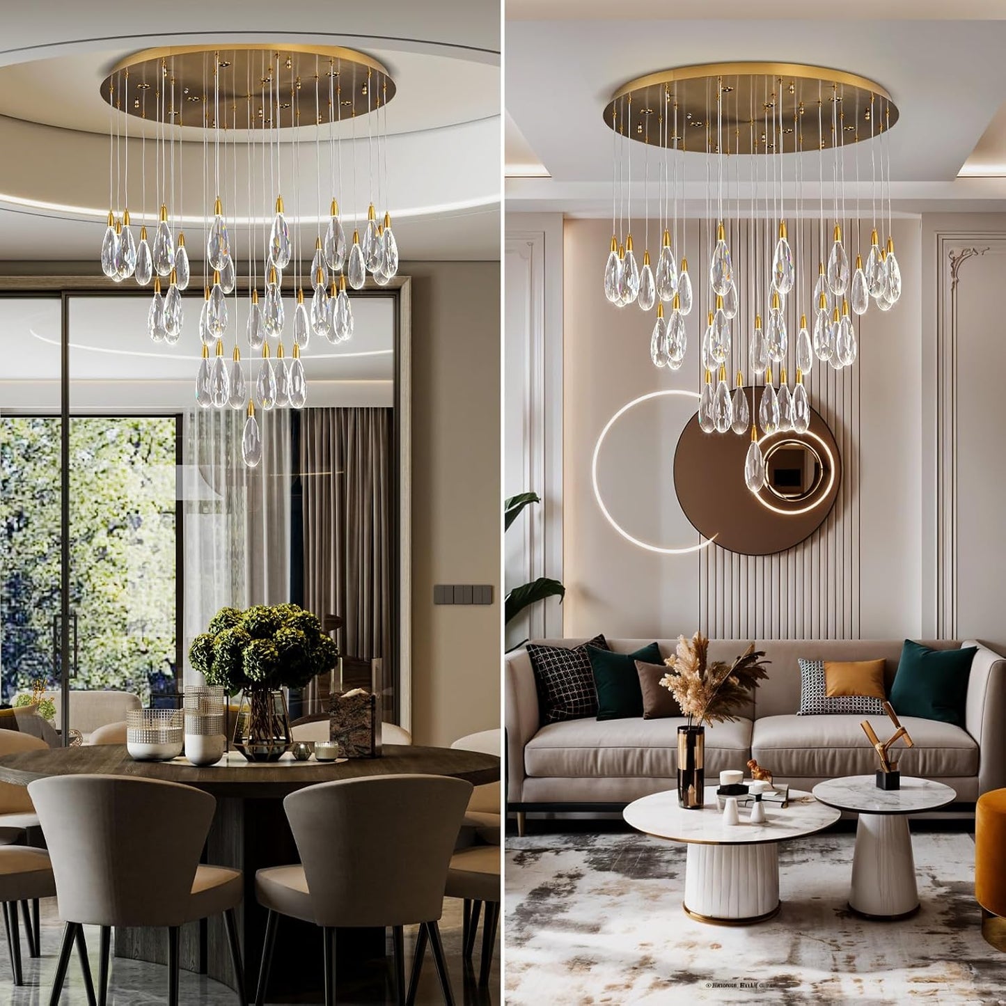 Perfect for foyers, staircases, dining rooms, living rooms, bedrooms, and commercial spaces like hotels and cafés. Its adjustable height allows for custom arrangements to match various ceiling heights and styles.