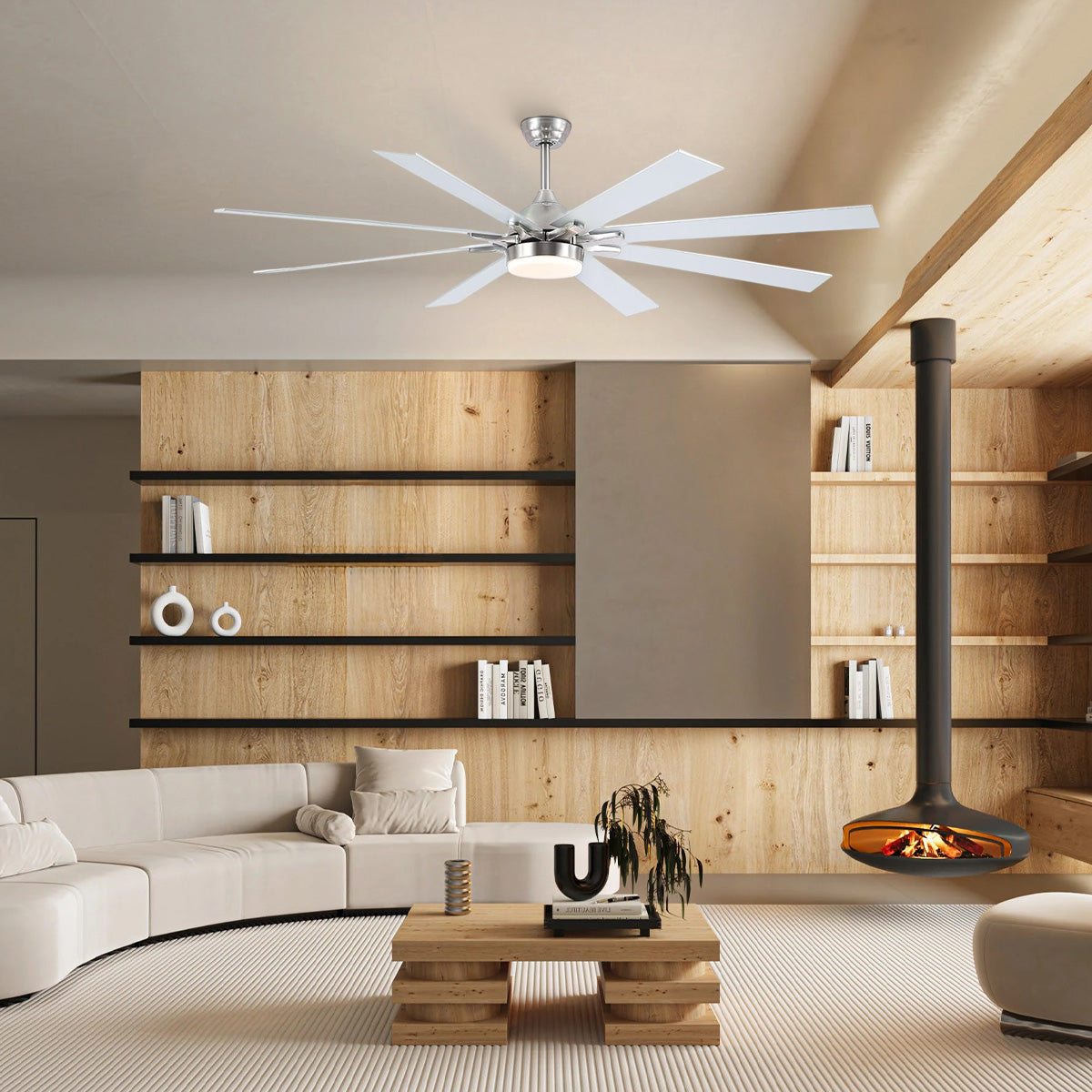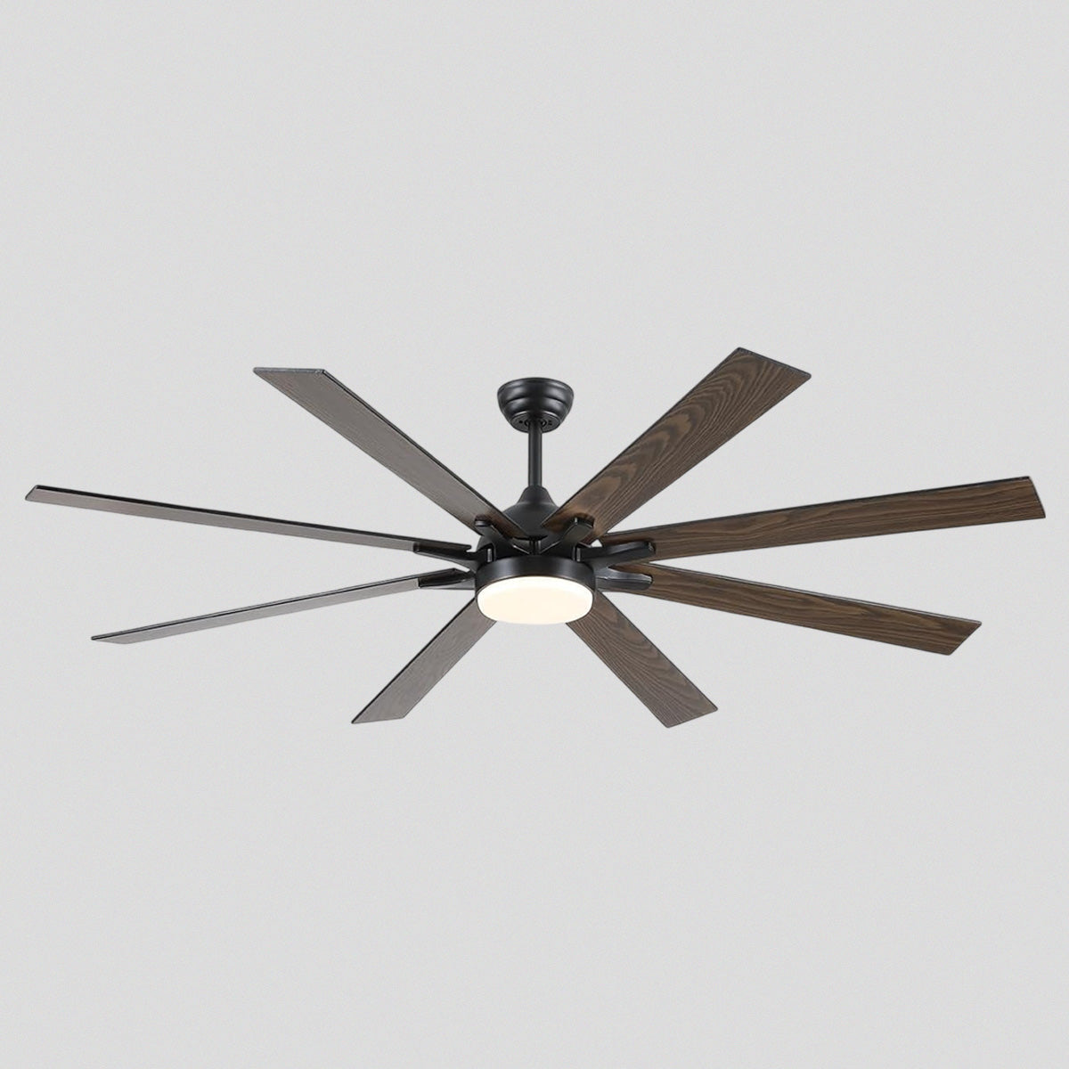 This ceiling fan with light combines modern minimalism with natural warmth. Featuring wood-finish blades and a central round light, it delivers soft ambient lighting while keeping your space cool. Ideal for living rooms, dining areas, and offices.