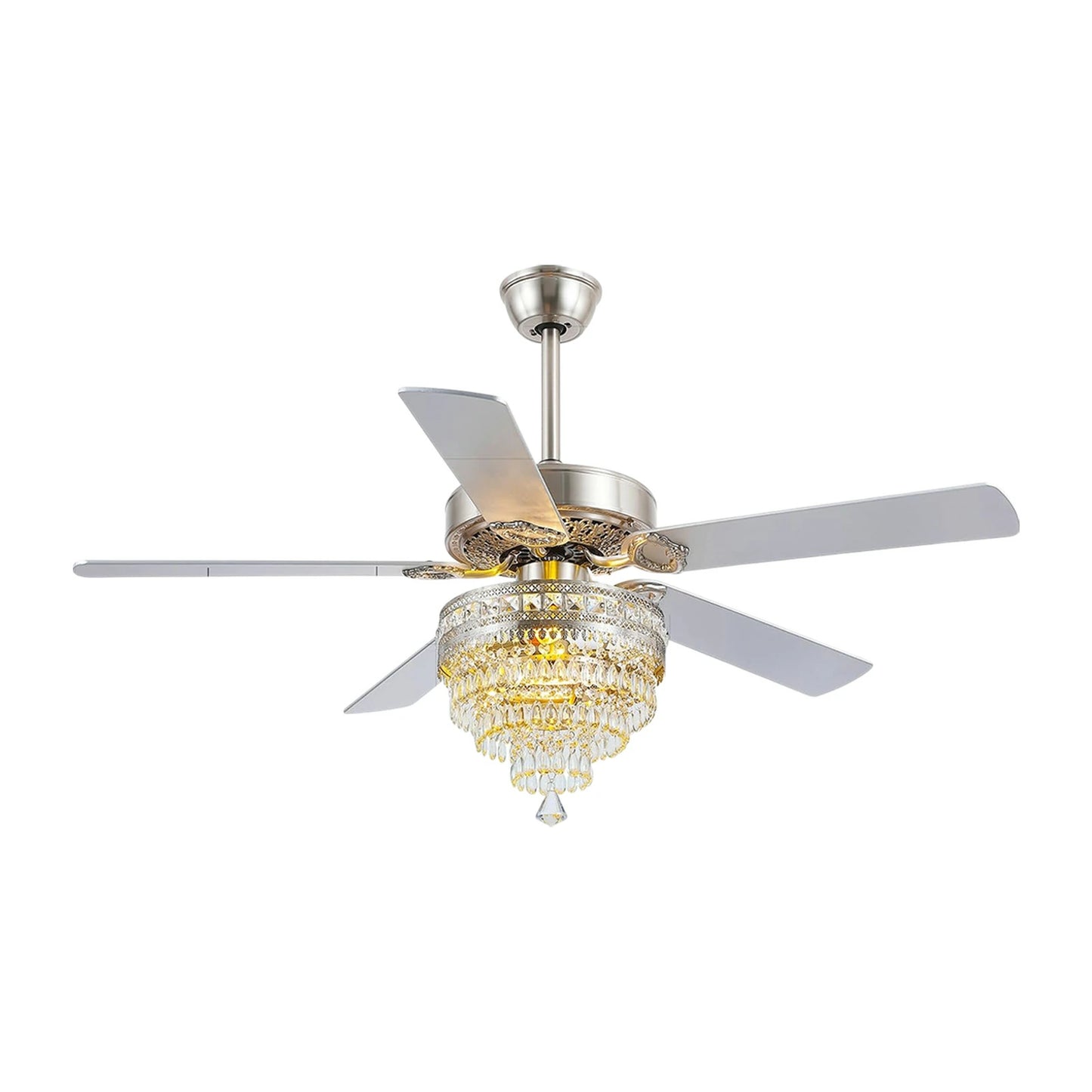 Noiseless Crystal Ceiling Fan Fandelier with Lights 52"