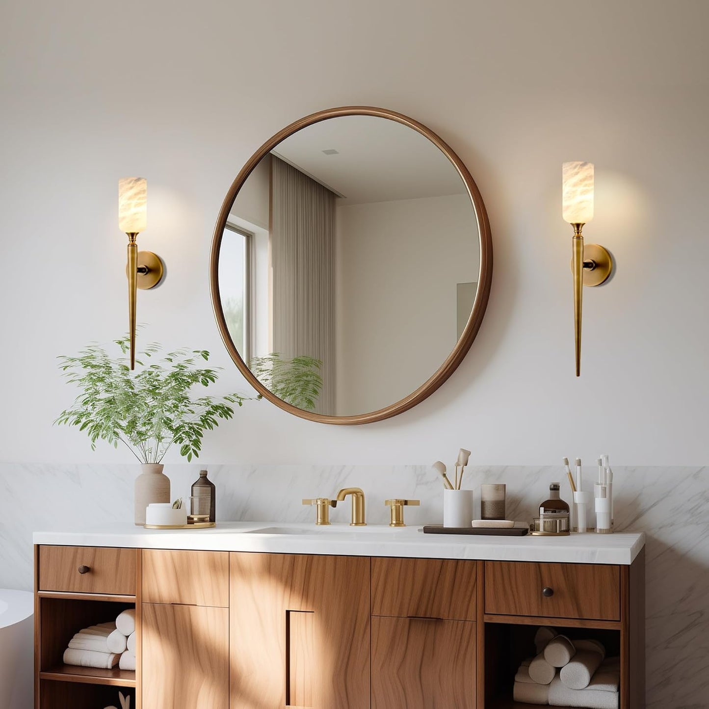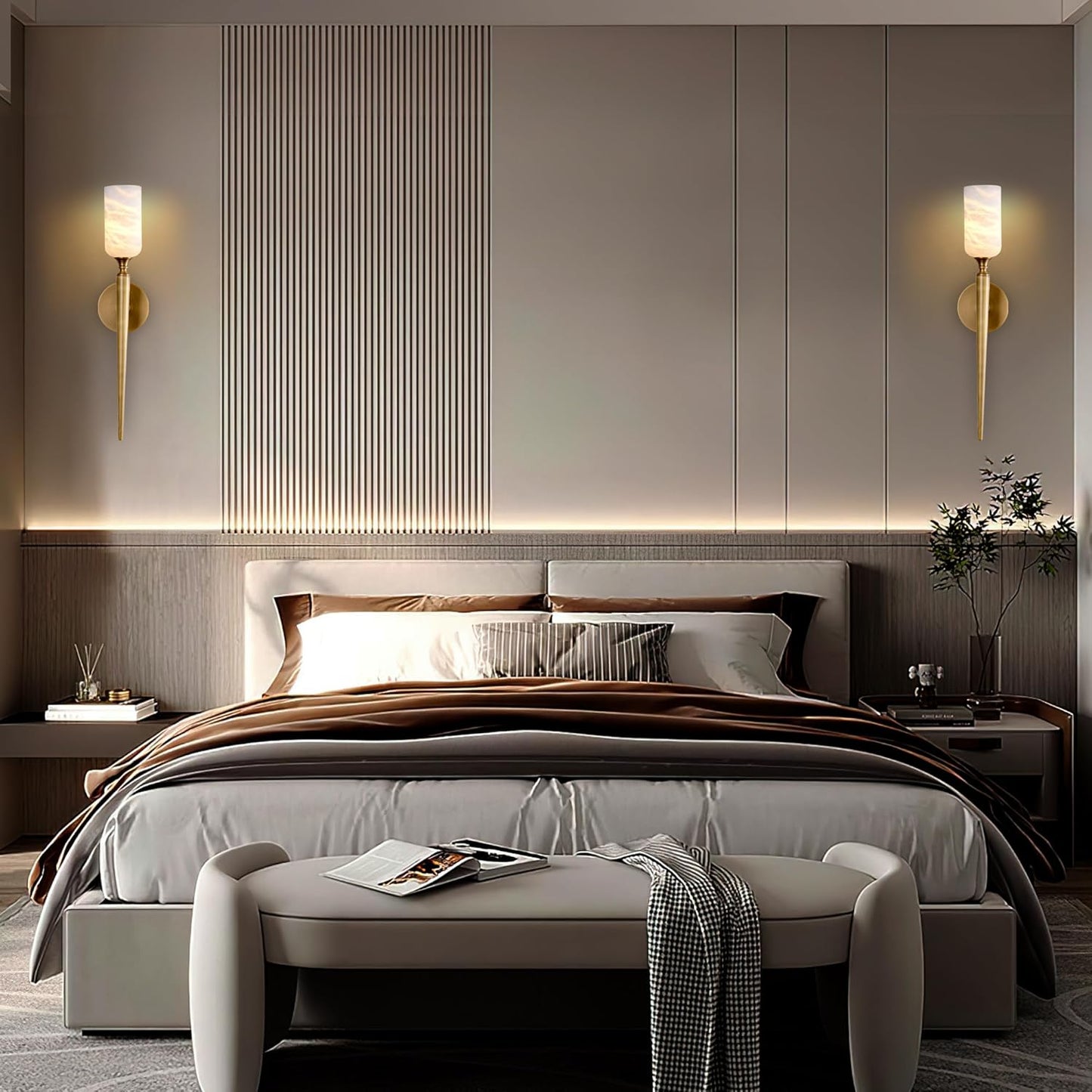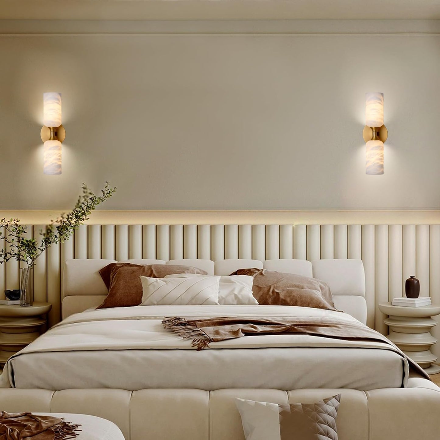 Each sconce is handcrafted from premium Spanish alabaster, known for its translucent beauty and unique veining. Paired with finely polished solid brass, this fixture combines natural artistry with modern craftsmanship, ensuring durability and timeless appeal.