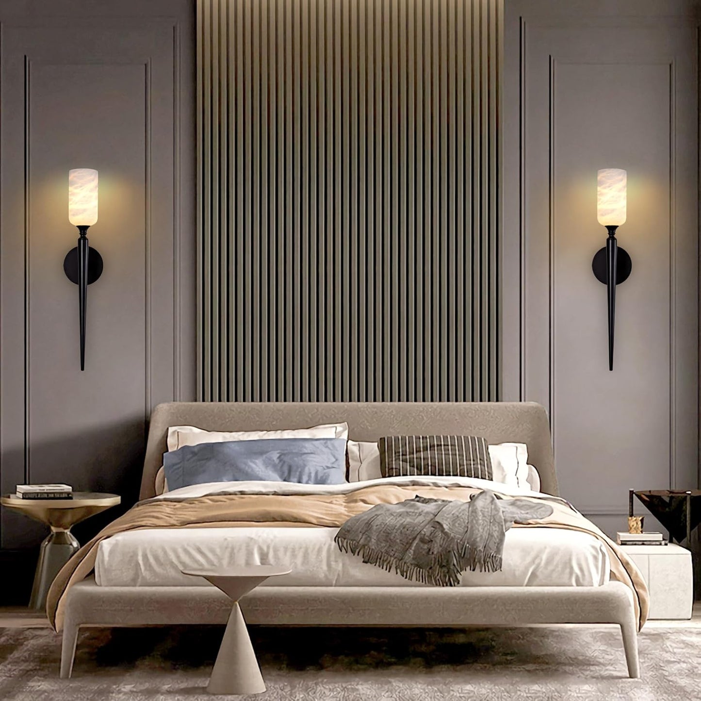 Designed as both a functional light source and a decorative accent, this alabaster wall sconce works beautifully as bedside lighting, vanity illumination, or hallway accents. Its warm glow enhances ambiance while highlighting the natural texture of alabaster.