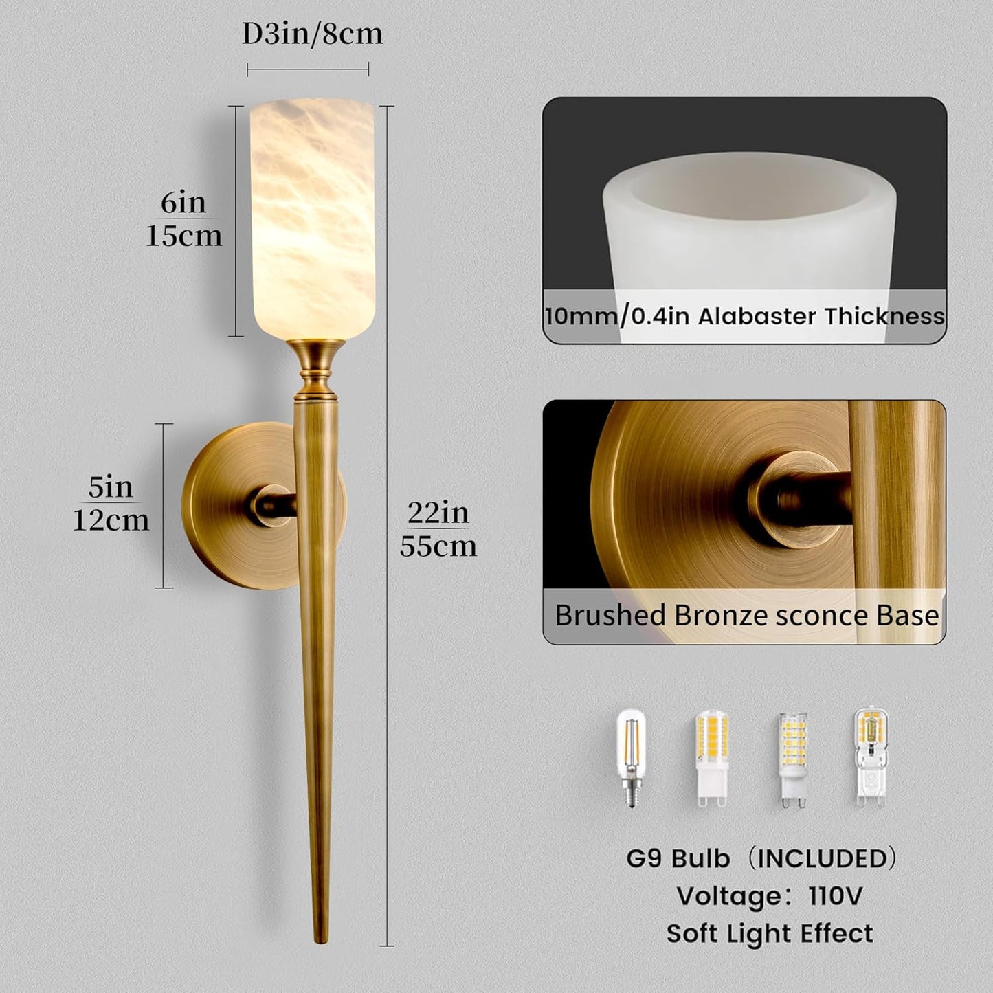 | Material | Spanish Natural Alabaster, Solid Brass |