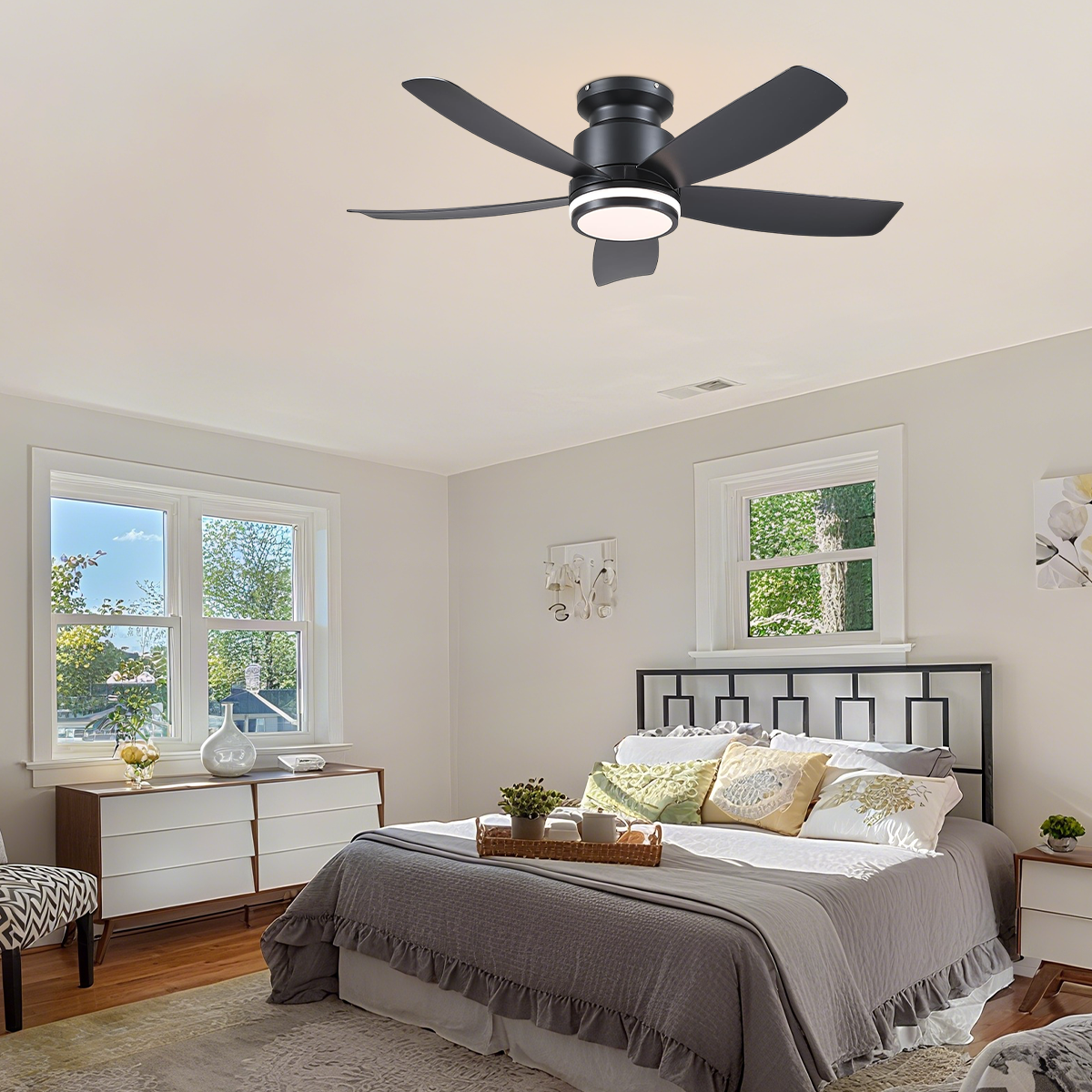 This 5-blade recessed modern ceiling fan with remote control/app combines lighting and ventilation in one. With a reversible DC motor, ultra-quiet operation, and dimmable dual light sources, it fits perfectly in bedrooms, living rooms, and more.