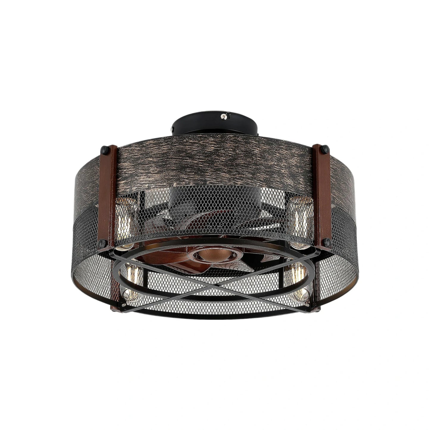 Vintage 19" Flush Mount Ceiling Fan with Cage Design and Remote Control