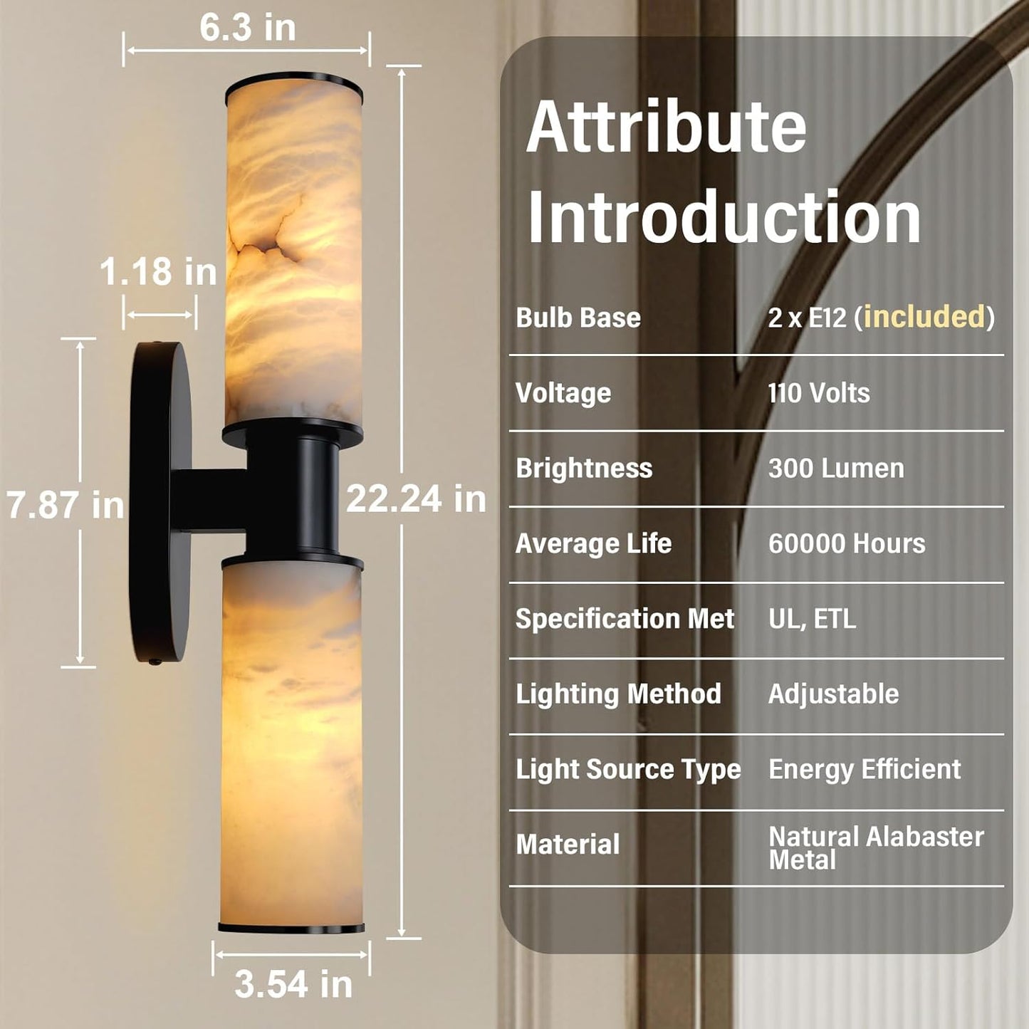Crafted from premium Spanish natural alabaster with a durable metal base, this modern wall sconce delivers both strength and elegance. The natural marble texture allows warm light to glow softly, creating a refined and cozy atmosphere.