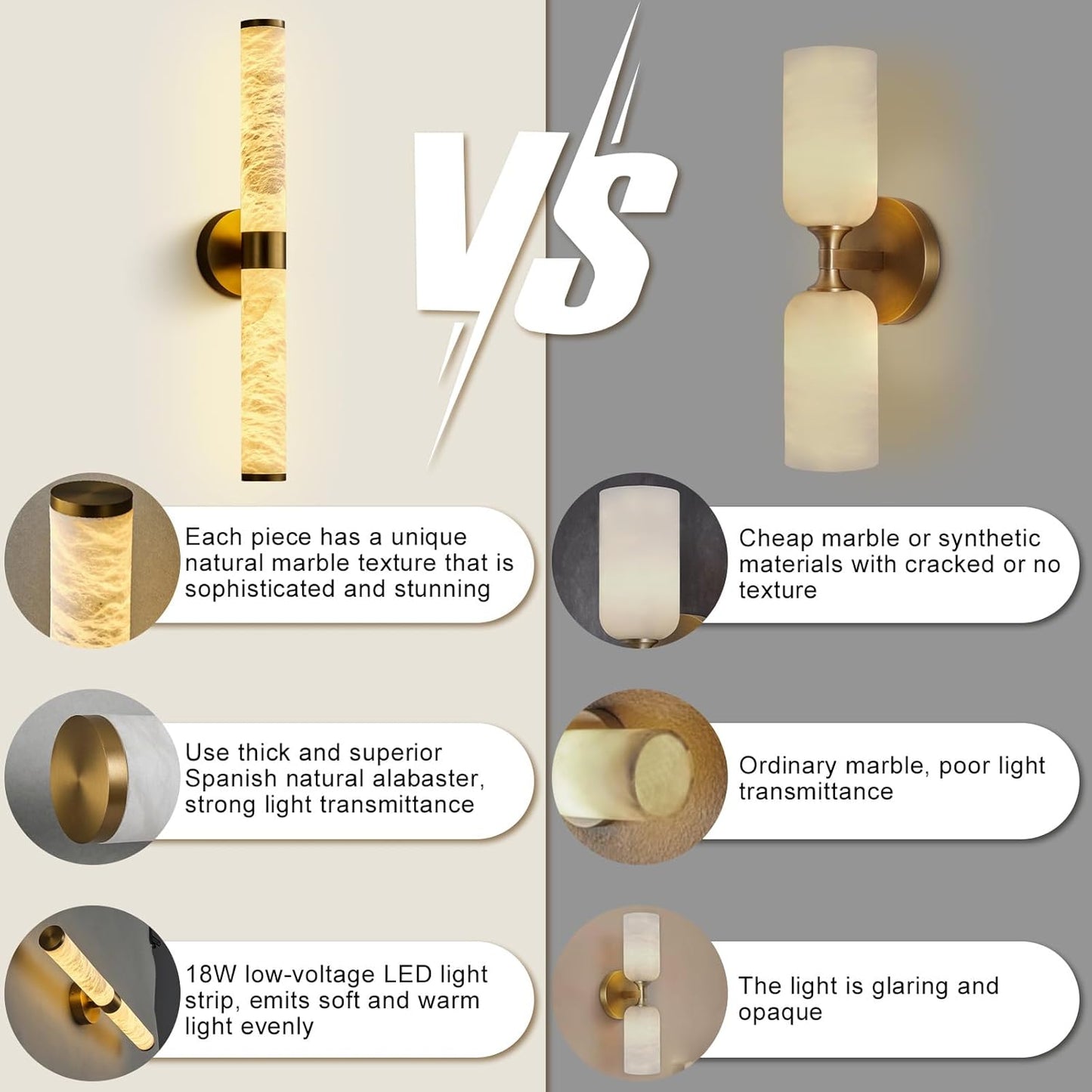 Elevate your home with this luxurious alabaster wall sconce, handcrafted from natural Spanish marble. Each piece features unique stone patterns that softly diffuse warm LED light, creating a cozy and elegant ambiance. With its slim 2.36" profile and minimalist design, it’s a refined choice for bedrooms, hallways, staircases, and more.