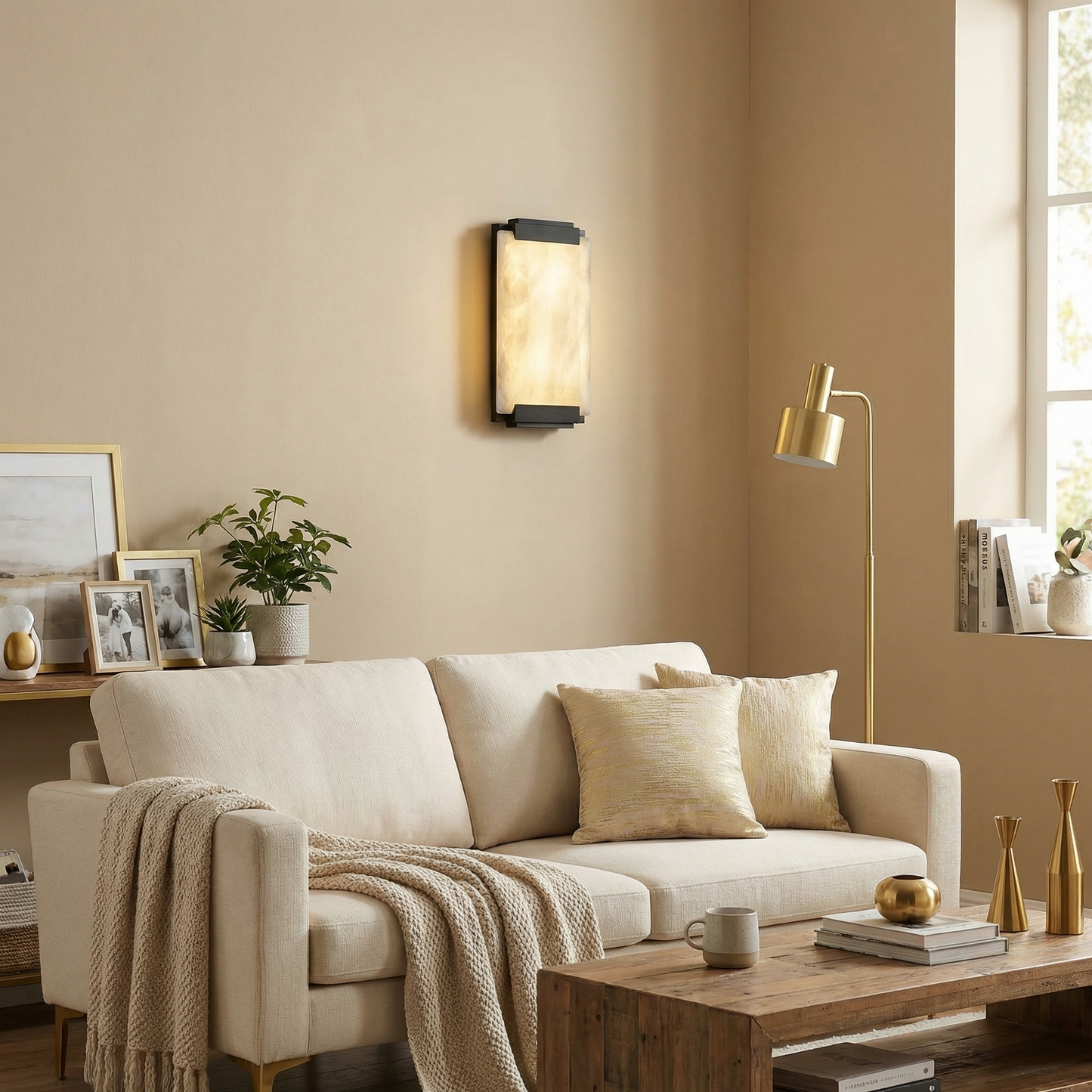Framed Slab Corner Bracket Alabaster Wall Sconce