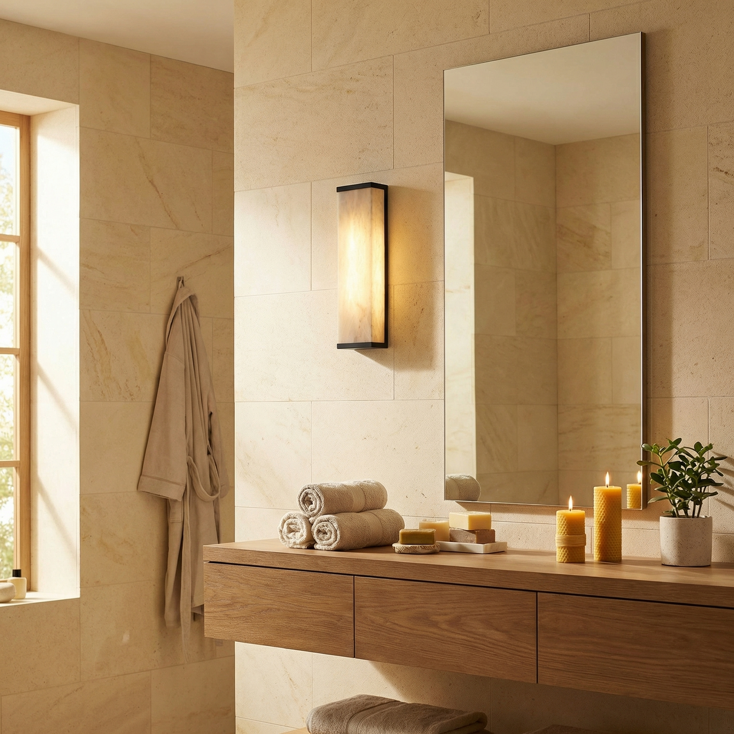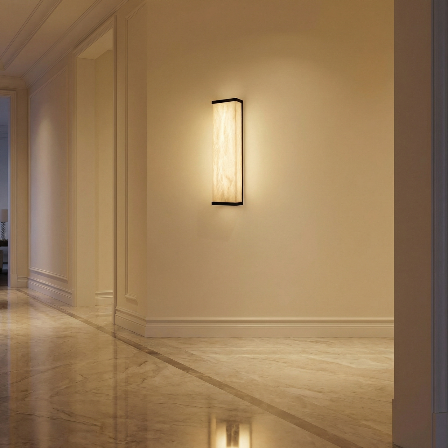 Lantern Box Minimal Alabaster Panel Wall Sconce