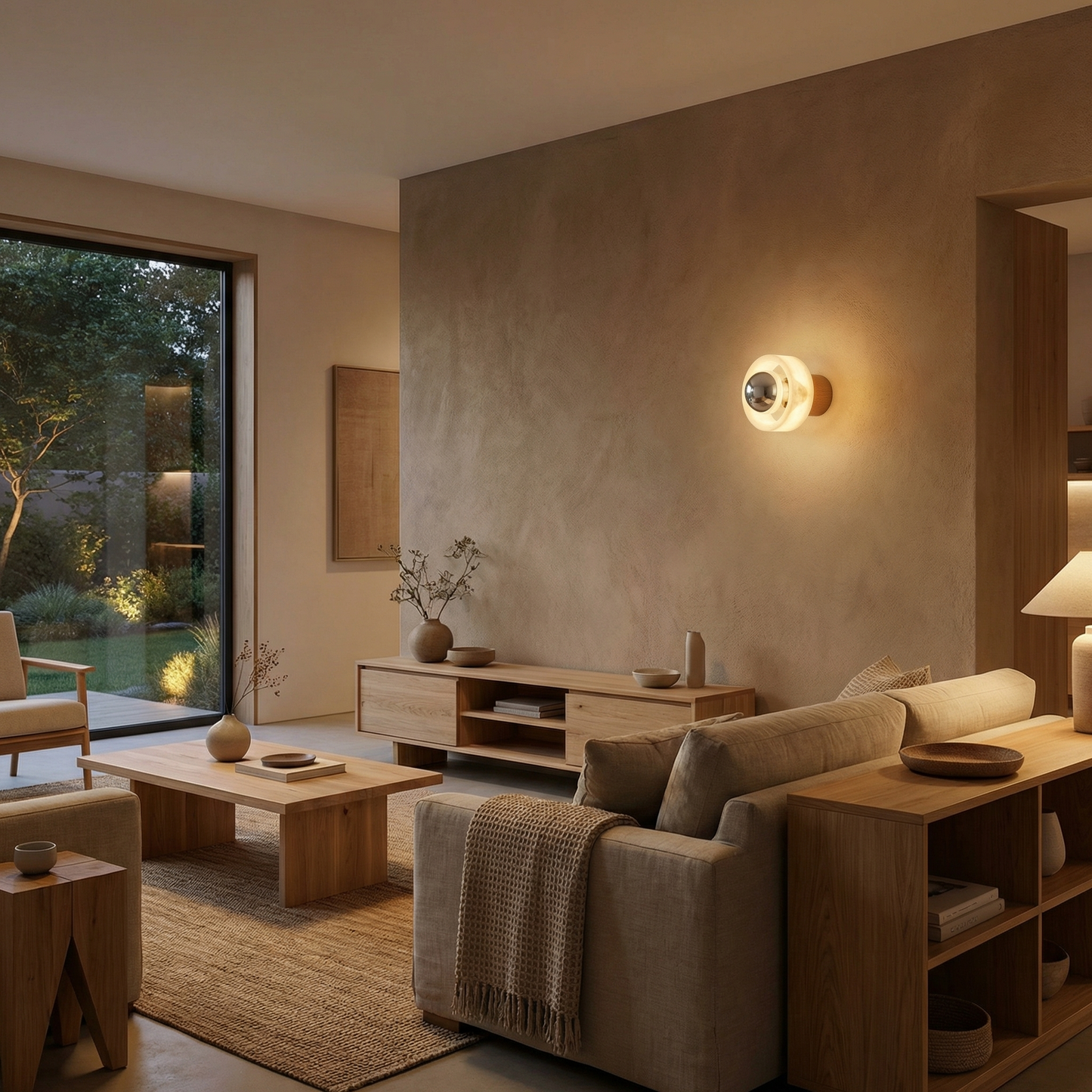 - Material: Solid Wood Base + Natural Translucent Alabaster