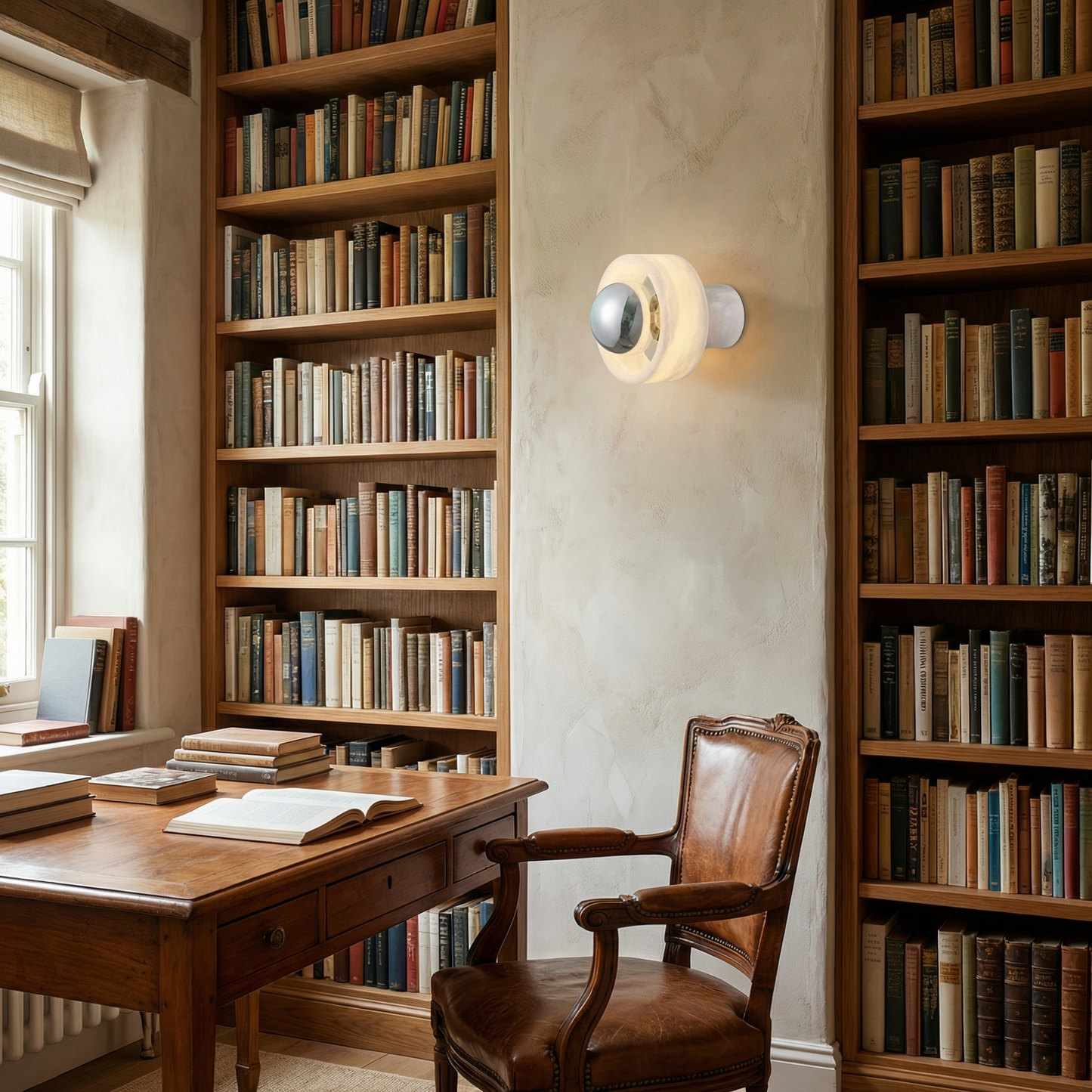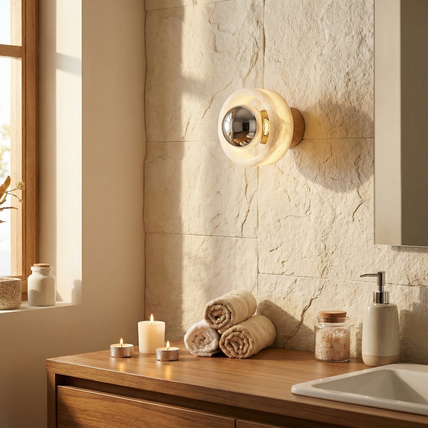Bosco Wood Polished Orb Alabaster Halo Wall Sconce
