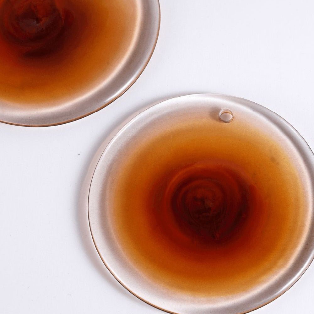 Elevate your space with the striking Mazzega Vistosi Chandelier, an artistic masterpiece of carbon steel and amber-toned glass. The hand-blown glass discs, arranged on a sleek frame, offer a warm, inviting glow, adding an exclusive touch to any modern or mid-century interior.