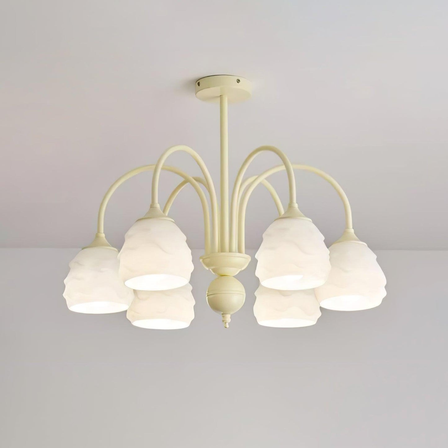 The Melting Ice Cream Chandelier features a milky white glass lampshade shaped like melting ice cream. This unique piece is perfect for adding a trendy, whimsical touch to any room, giving off a creamy, This one-of-a-kind Melting Ice Cream Chandelier showcases a milky white glass lampshade crafted in the shape of melting ice cream. Its delightful and fashionable aesthetic is sure to lend any room a creamy, whimsical ambiance.