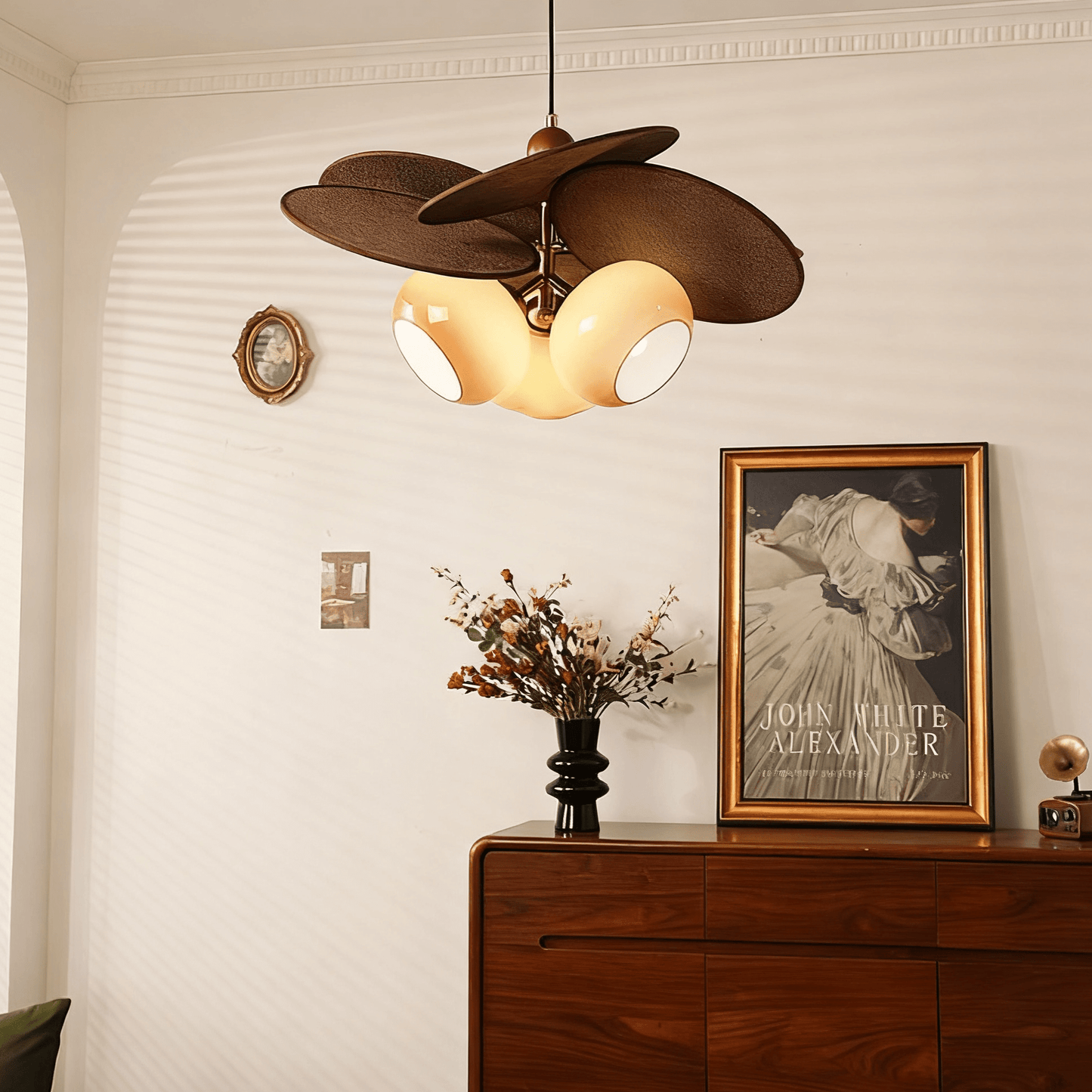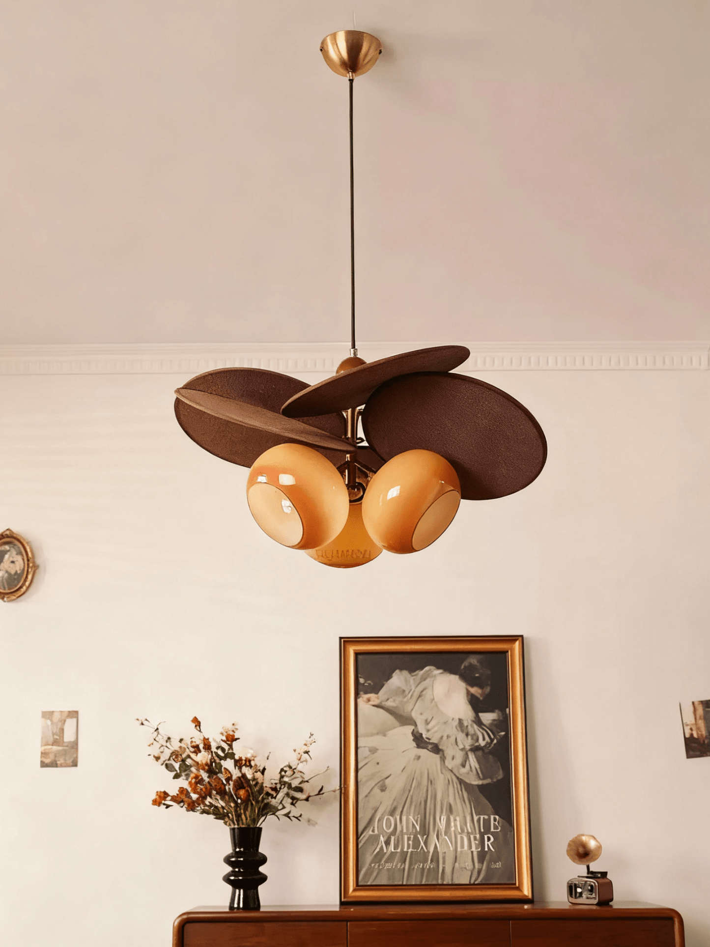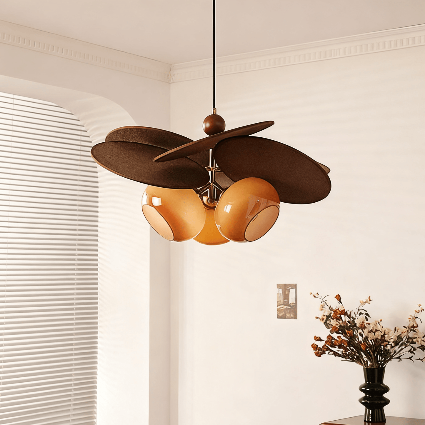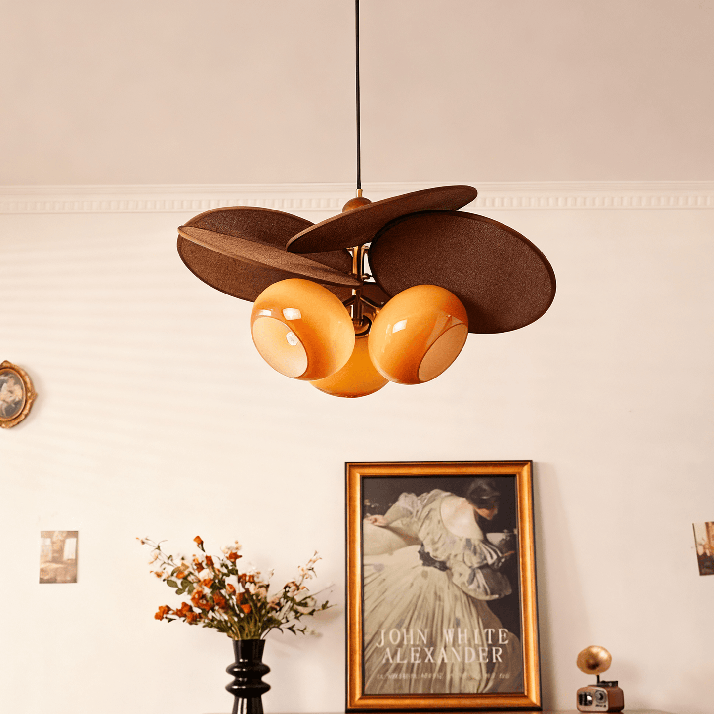 A striking fusion of organic shape and retro-futuristic charm, the Orabel Ember Chandelier by YIOSI brings bold personality into any space. Sculpted with rich walnut-toned wooden blades that echo petals or wings in motion, and glowing amber glass globes that radiate a warm, ember-like hue, Orabel feels alive—like a living form suspended in air. Both artistic and functional, this chandelier is perfect for statement dining areas, lofts, or creative interiors seeking warmth, originality, and soul. Designed to ignite conversation—only from YIOSI.