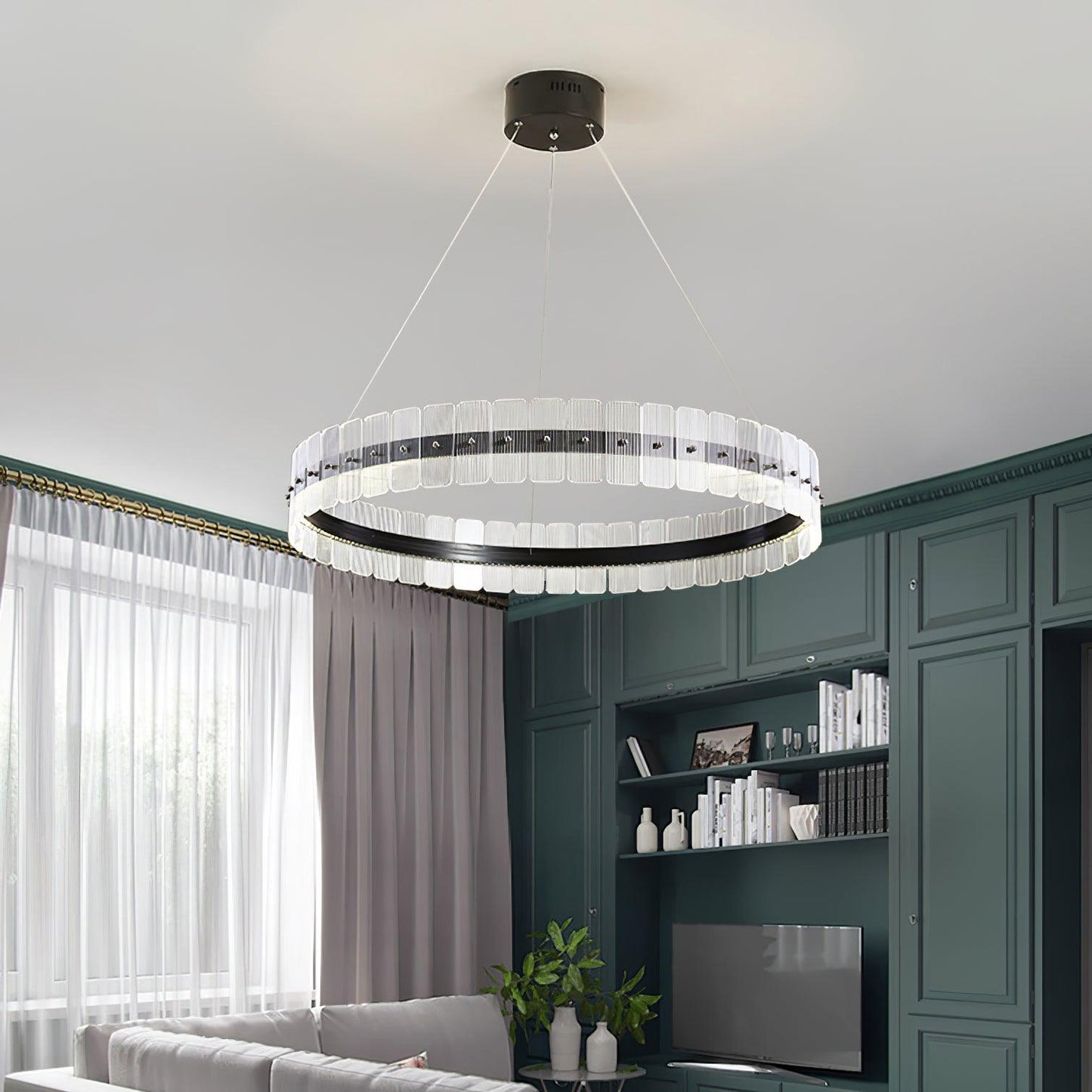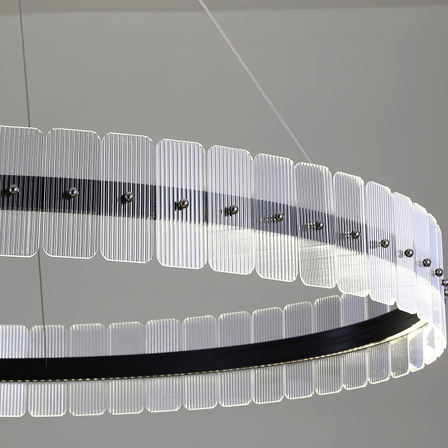 Saturno LED Chandelier relies on transparency to create sparkling light. Piece-by-piece Acrylic blocks make up the shade, resulting in beautiful light refracting and reflection. A elegant air that is also relevant in modern spaces.