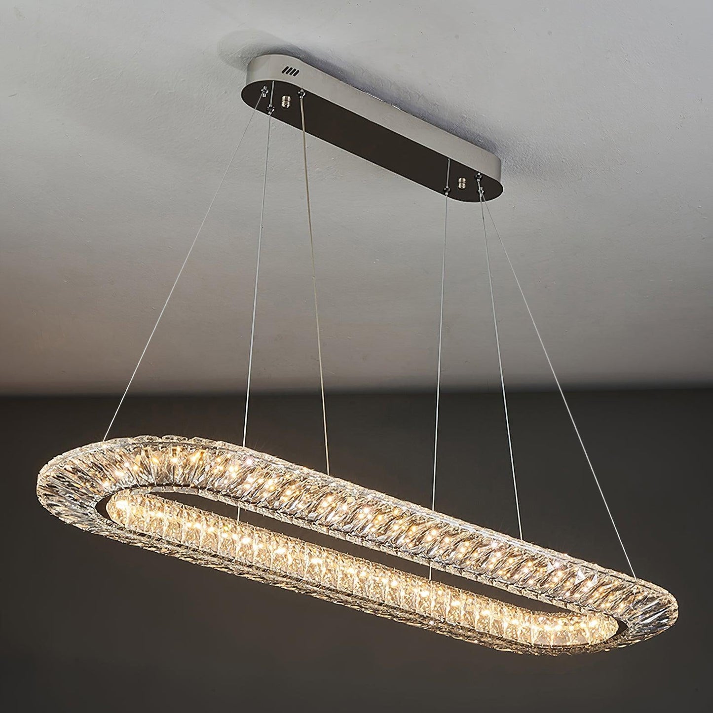 Tanager Geometric Chandelier - Good for Dining Room, Foyer, Entryway, Family Room and More! This beautiful lighting fixture features Crystals which capture and reflect the light from its LED chip. Truly a stunning chandelier, this fixture is sure to lend a special atmosphere anywhere it is placed.