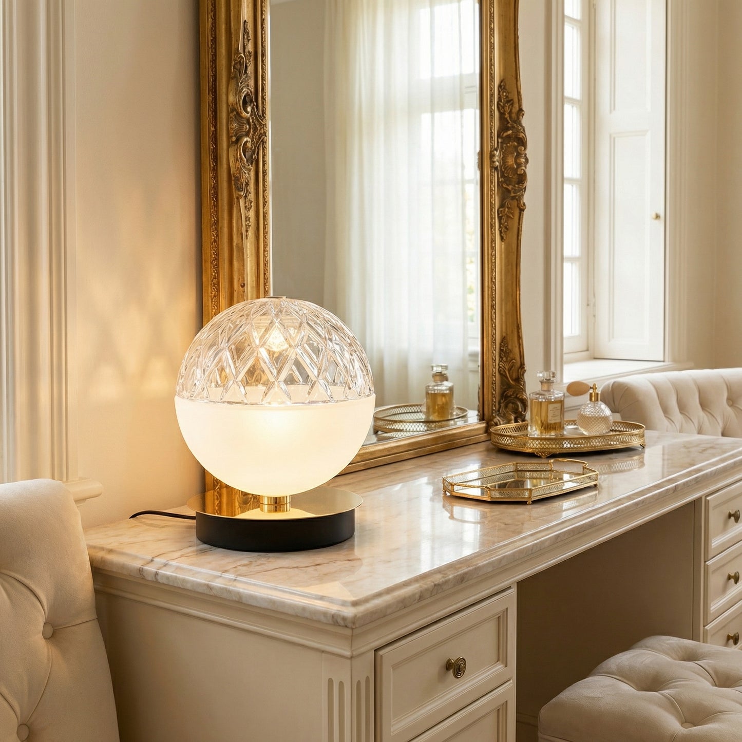 Elevate your space with the Yiosi Glorious Frosted Crystal Table Lamp, a masterfully crafted table lamp featuring stainless steel, crystal glass construction with a clear + matt finish. Each piece combines modern elegance with expert craftsmanship, creating a stunning focal point for any room.
