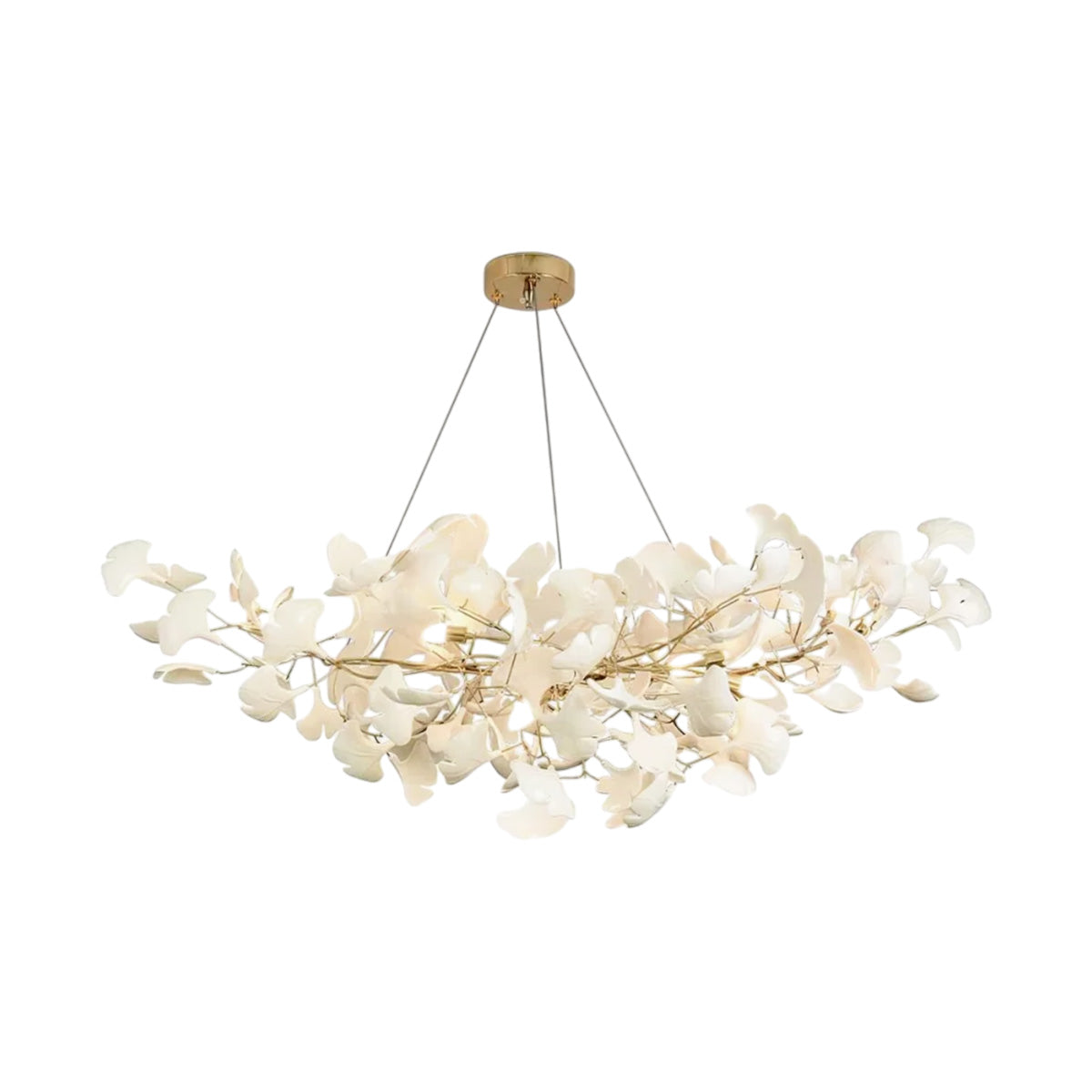 Elegant Ginkgo Leaf Porcelain Chandelier with Gold & Nickel Finish