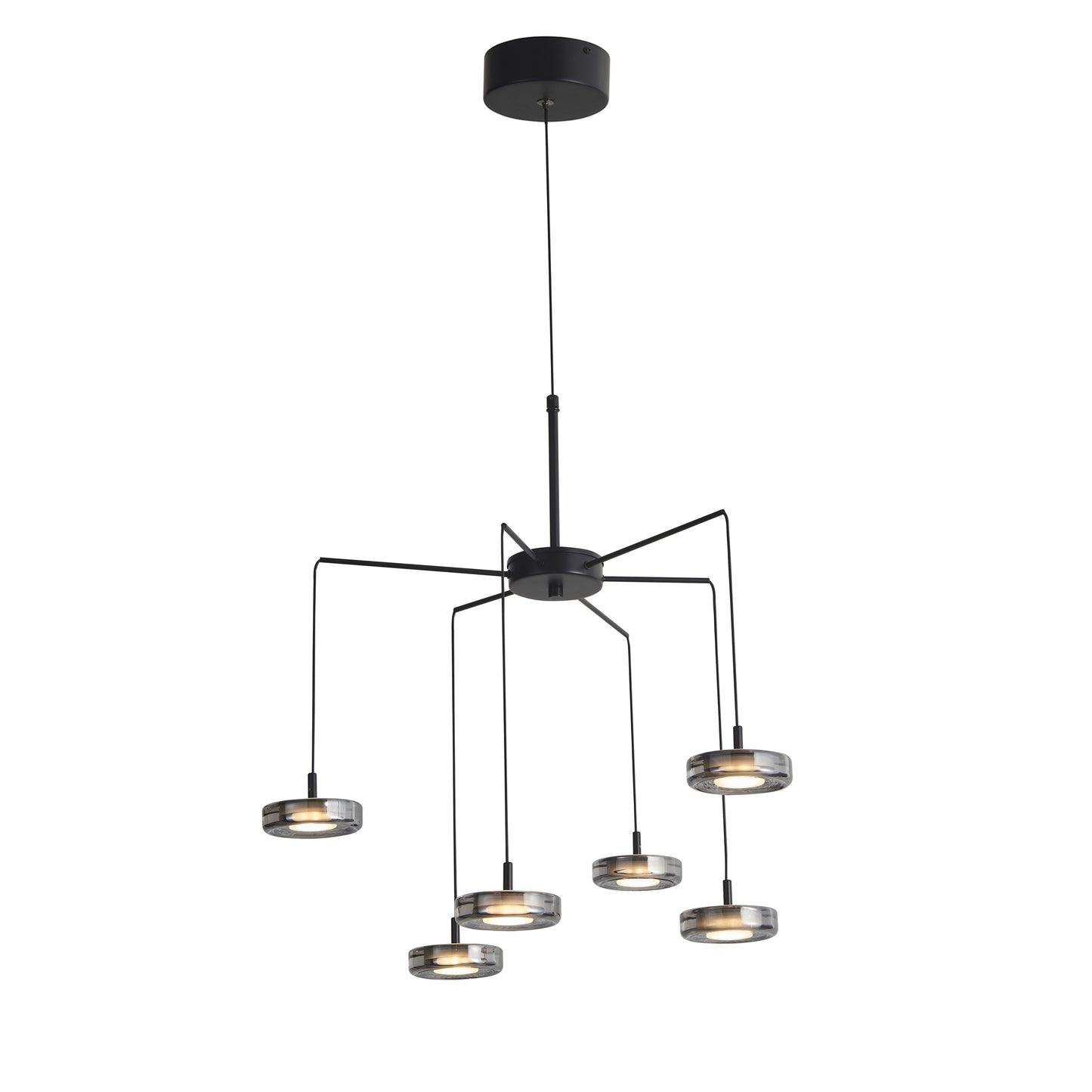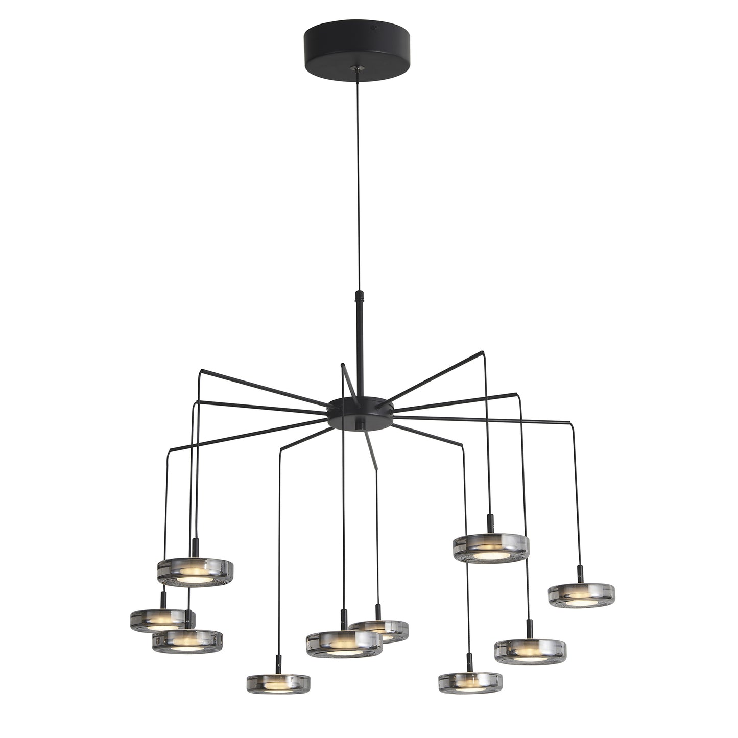 Modern Radial LED Chandelier – Black/Gold, Glass Discs, Dimmable
