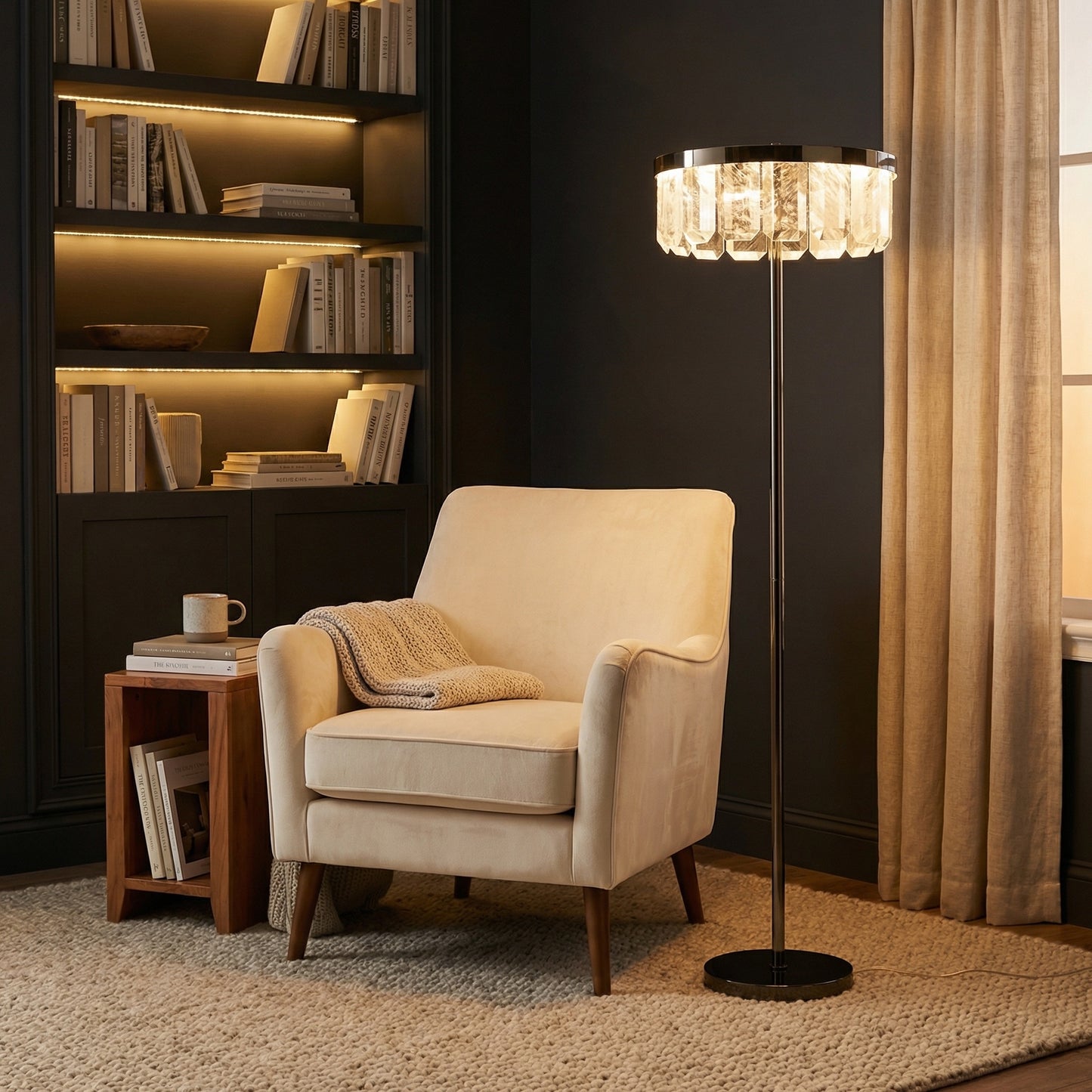 Elevate your space with the Yiosi Series Crystal Floor Lamp Style B, a masterfully crafted floor lamp featuring stainless steel, natural crystal construction with a champagne gold finish. Each piece combines modern elegance with expert craftsmanship, creating a stunning focal point for any room.