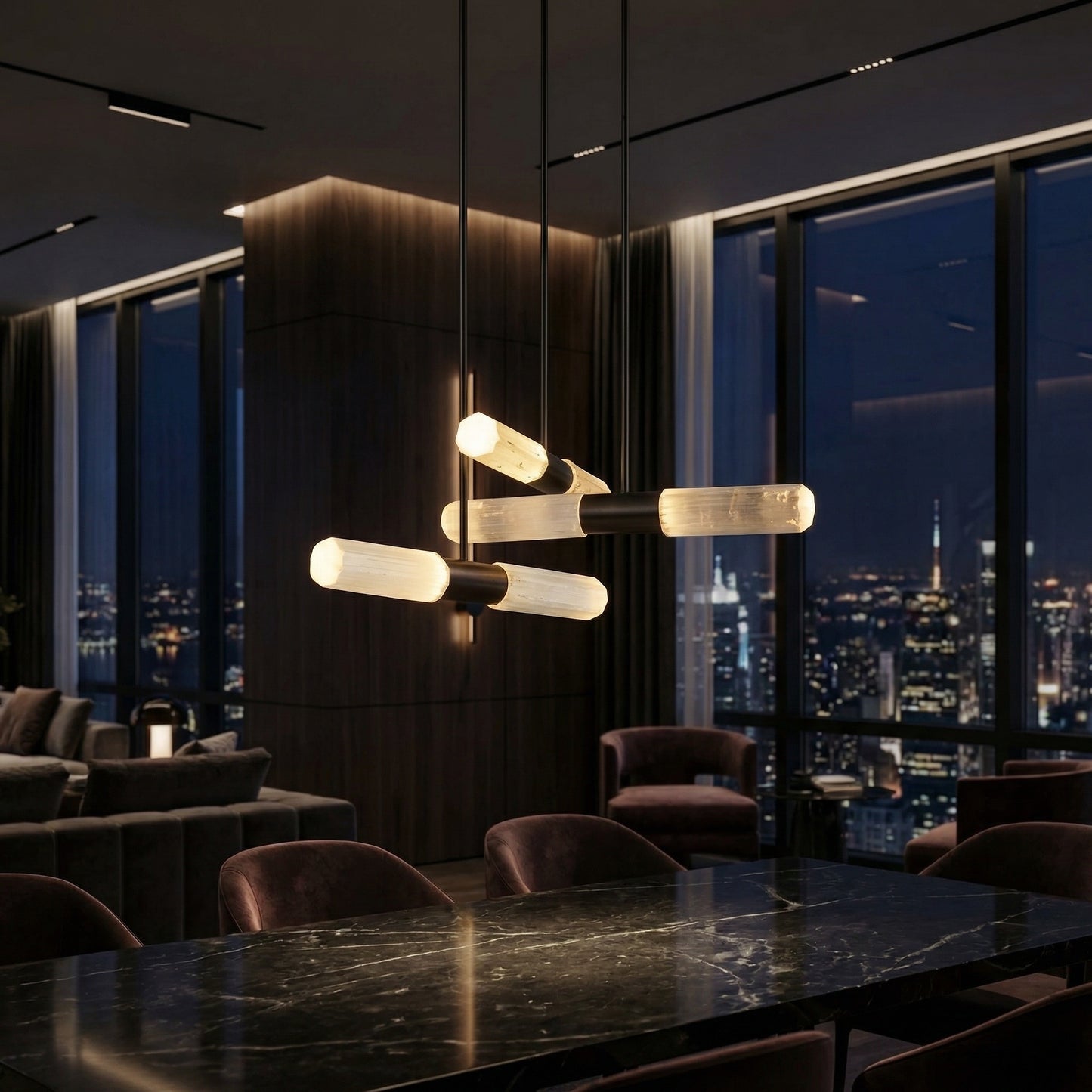 Elevate your space with the Yiosi Gemstones Crystal Pendant Light, a masterfully crafted pendant lamp featuring hardware, natural mineral crystals construction with a matte black finish. Each piece combines modern elegance with expert craftsmanship, creating a stunning focal point for any room.