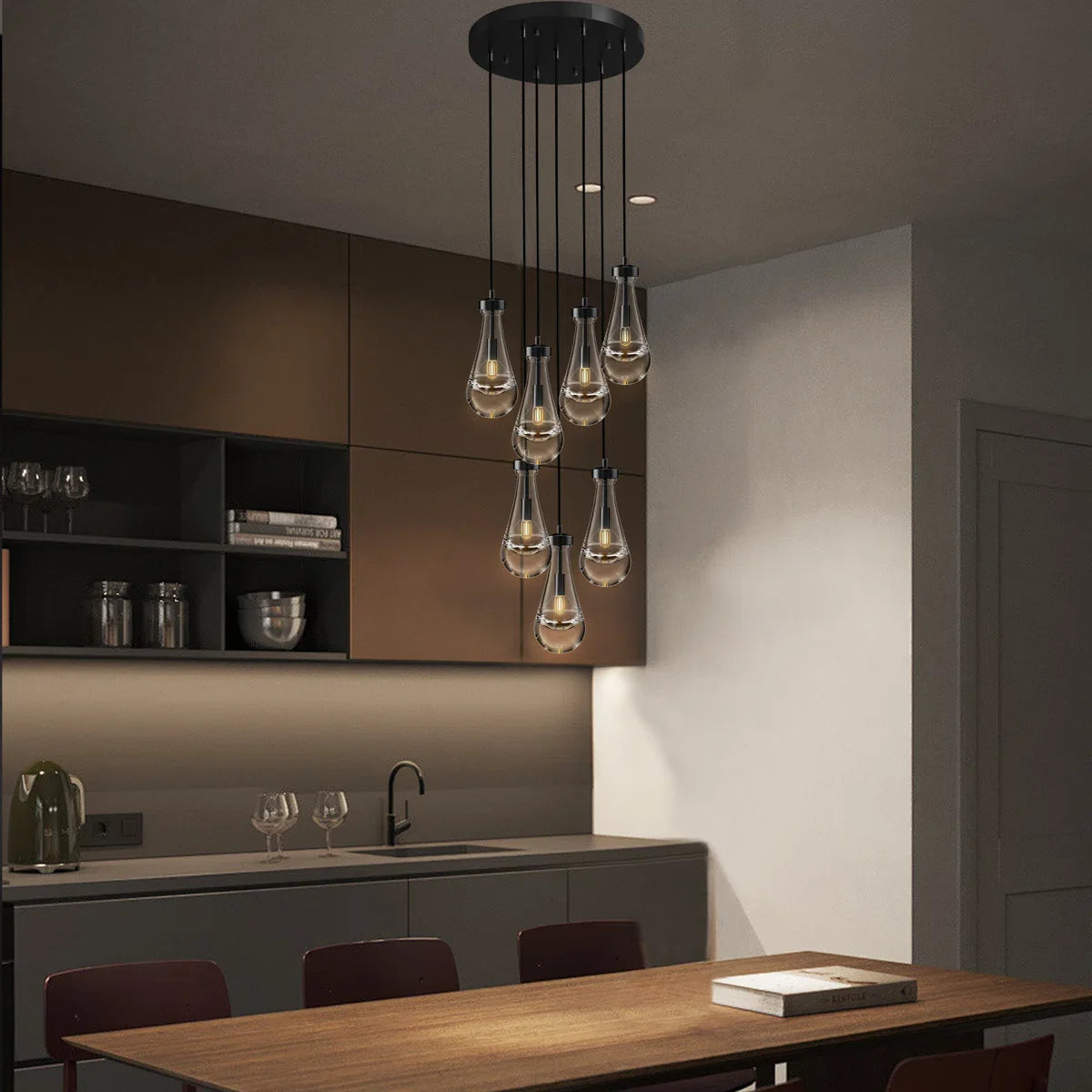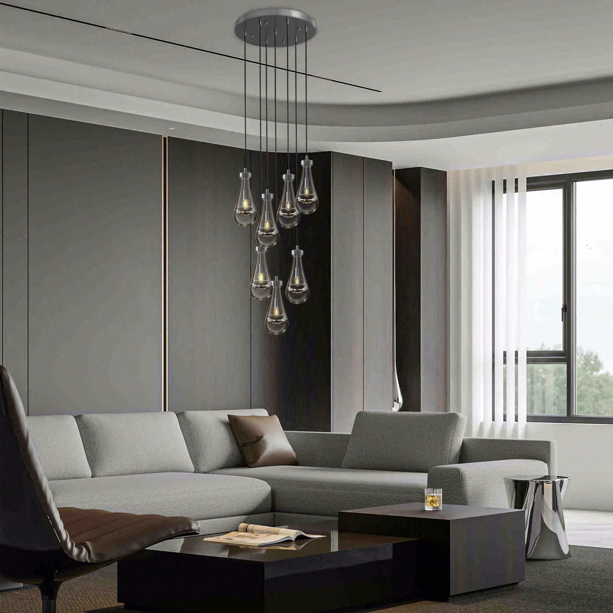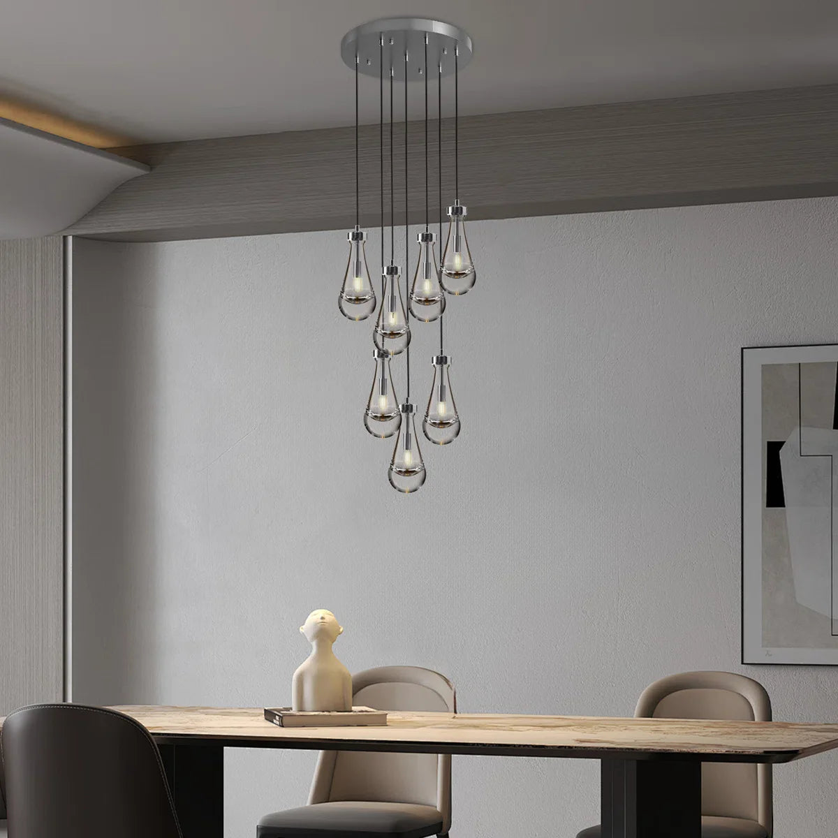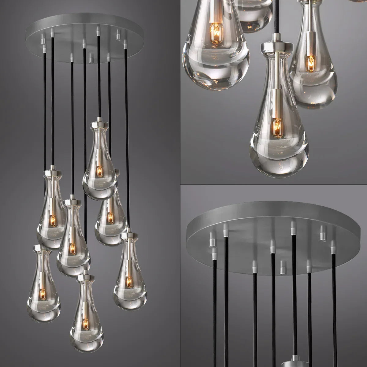 7-Lights Raindrop Solid Thick Glass Pendant light