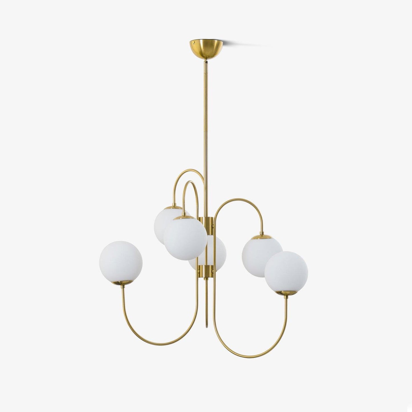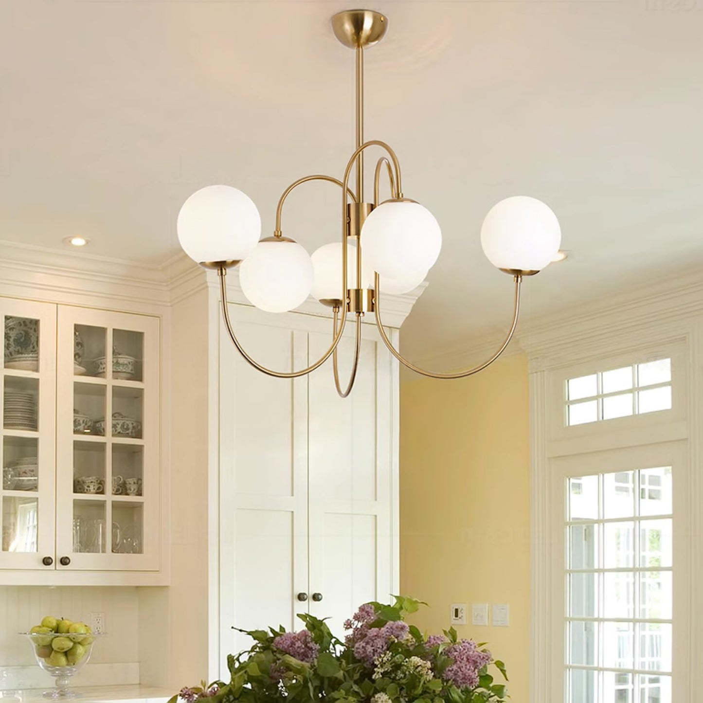 Indulge in the graceful elegance of our Gooseneck Chandelier, a masterpiece crafted with meticulous attention to detail. This exquisite fixture combines the strength of wrought iron with the delicate translucence of glass shades, producing a harmonious blend of industrial resilience and ethereal beauty. Designed to captivate, each arm gracefully curves like the neck of a swan, culminating in pristine glass globes that diffuse a soft, inviting light. Ideal for contemporary or mid-century modern interiors, this chandelier is a statement of luxury and an emblem of sophistication. Whether it adorns a lively living room or a serene bedroom, the Gooseneck Chandelier is sure to enhance the space with its warm glow and striking silhouette.