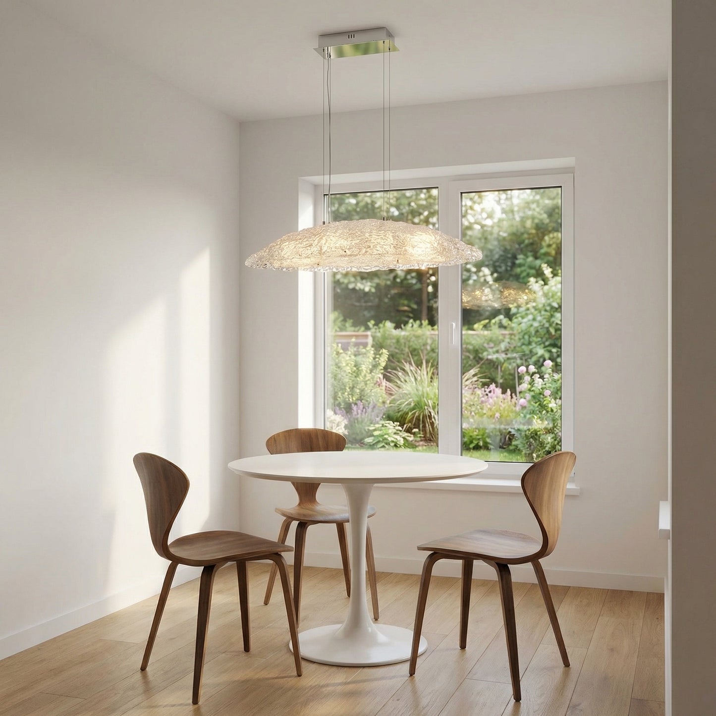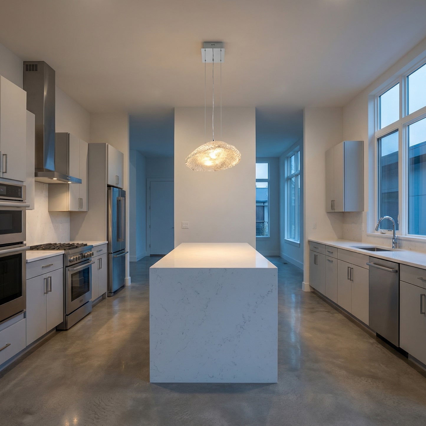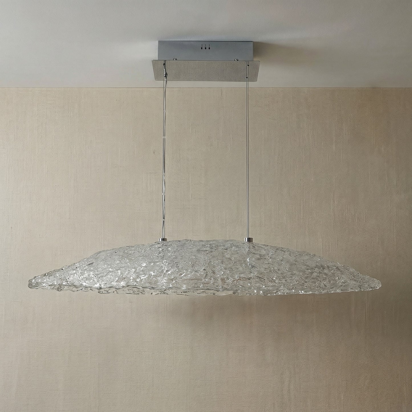 Elevate your space with the Yiosi Glitter Glass Pendant Light 35", a masterfully crafted pendant lamp featuring stainless steel, handmade glass construction with a chrome finish. Each piece combines modern elegance with expert craftsmanship, creating a stunning focal point for any room.