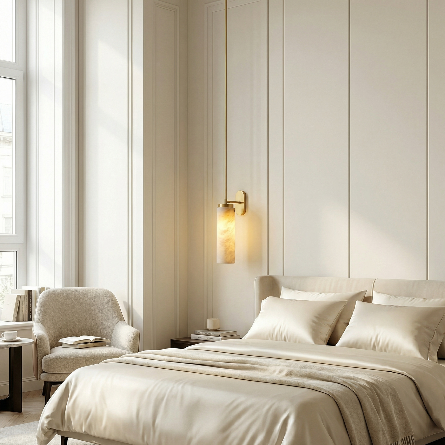 Rod Pendant Tall Drop Alabaster Brass Wall Sconce