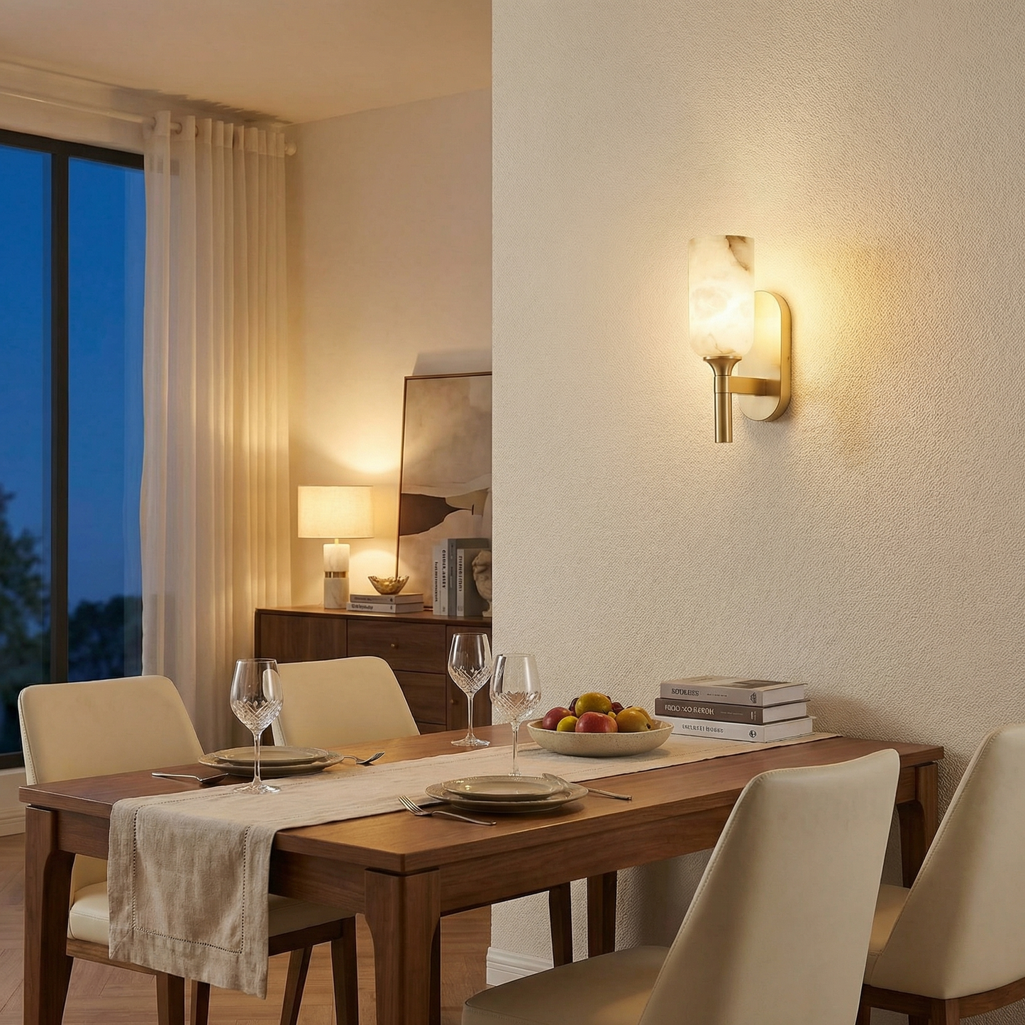 - Material: Brass Hardware + Natural Translucent Alabaster