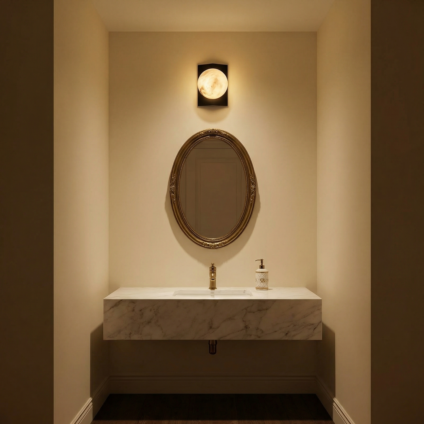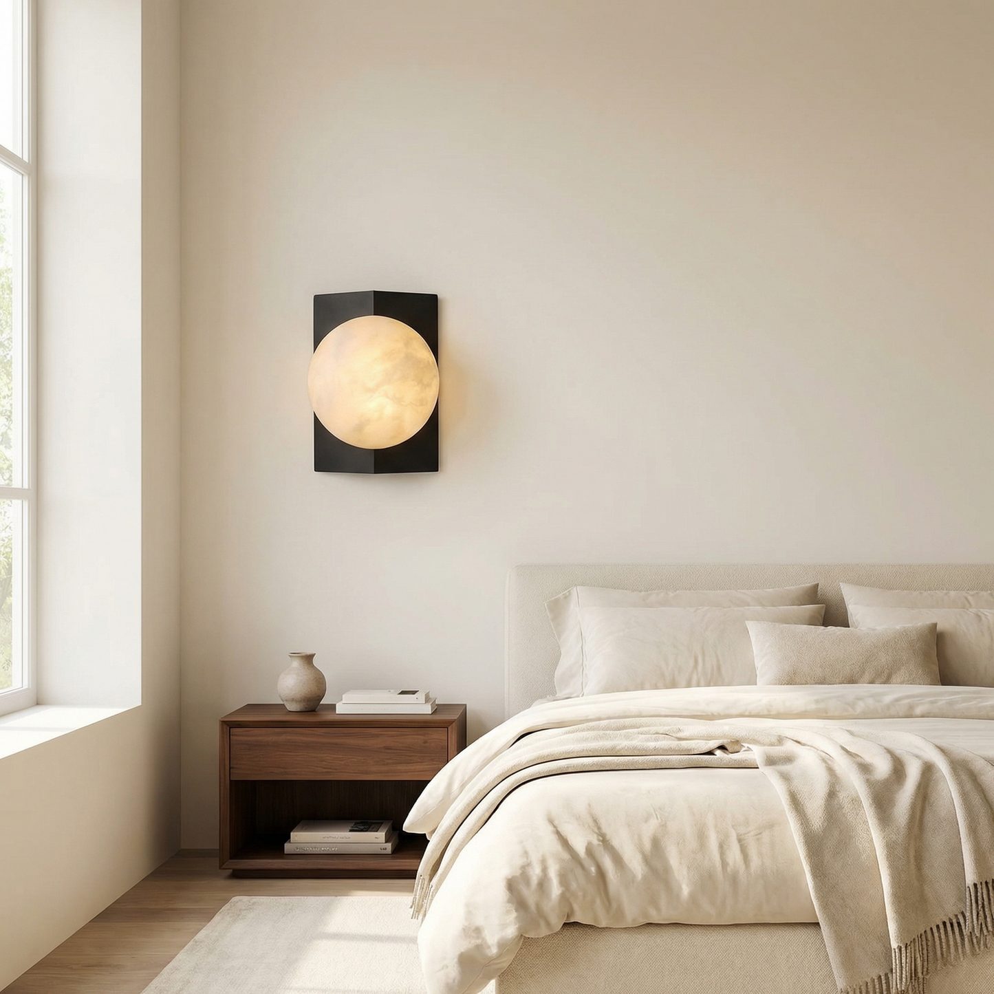 Rectangular Plate Front Orb Alabaster Wall Sconce