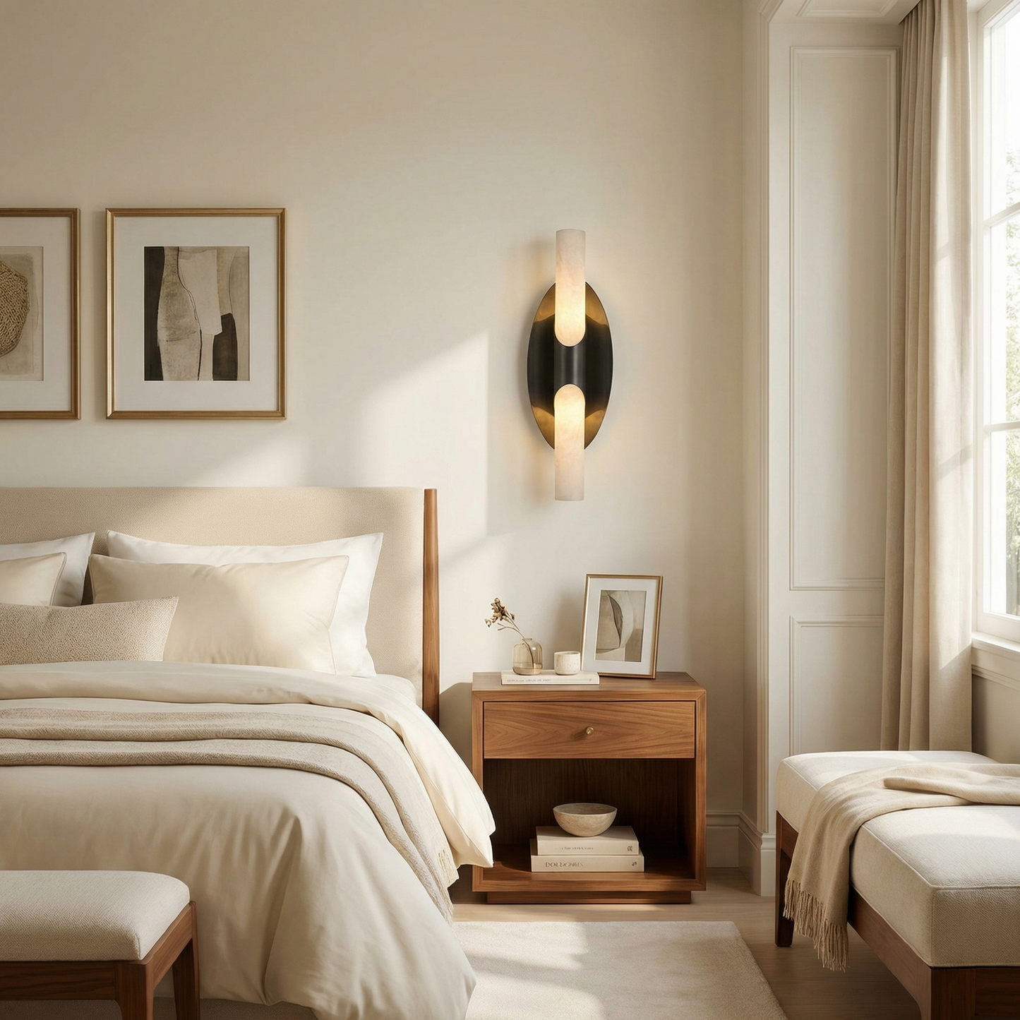 Oval Plate Duo Twin Opal Alabaster Wall Sconce