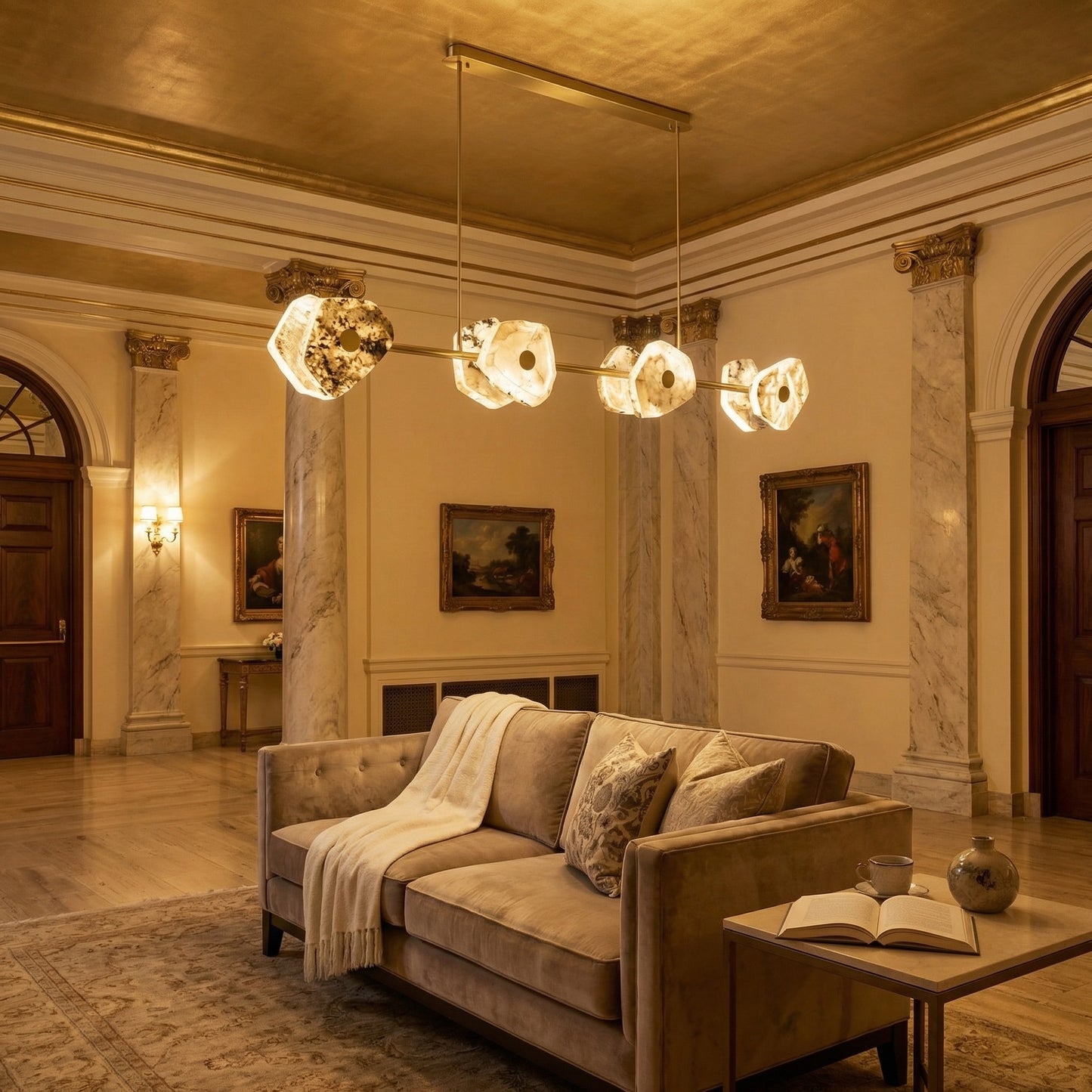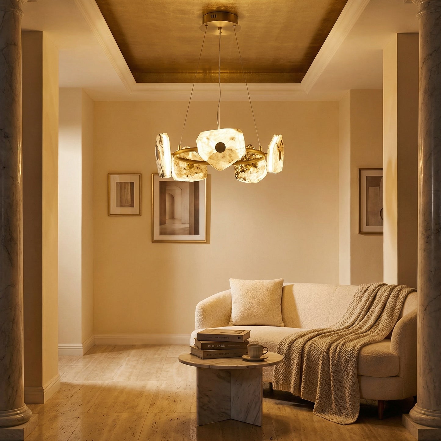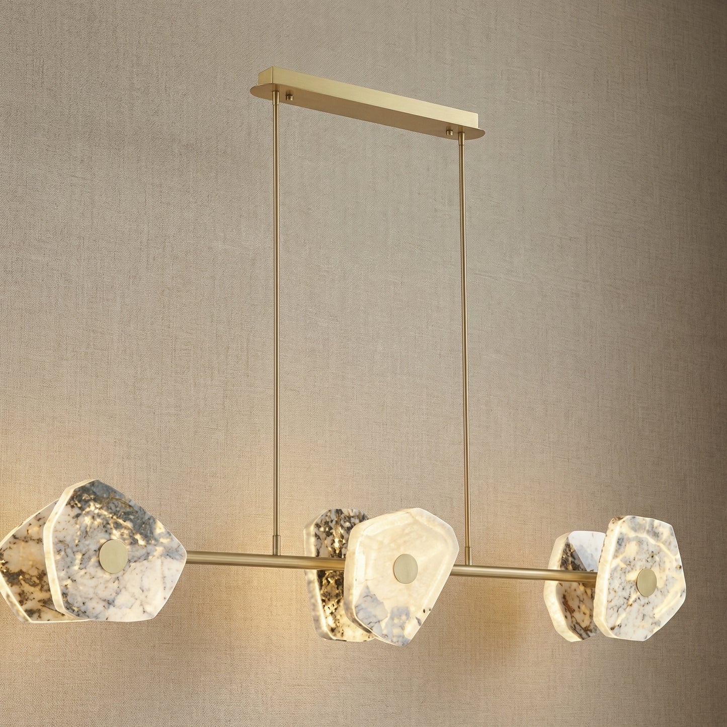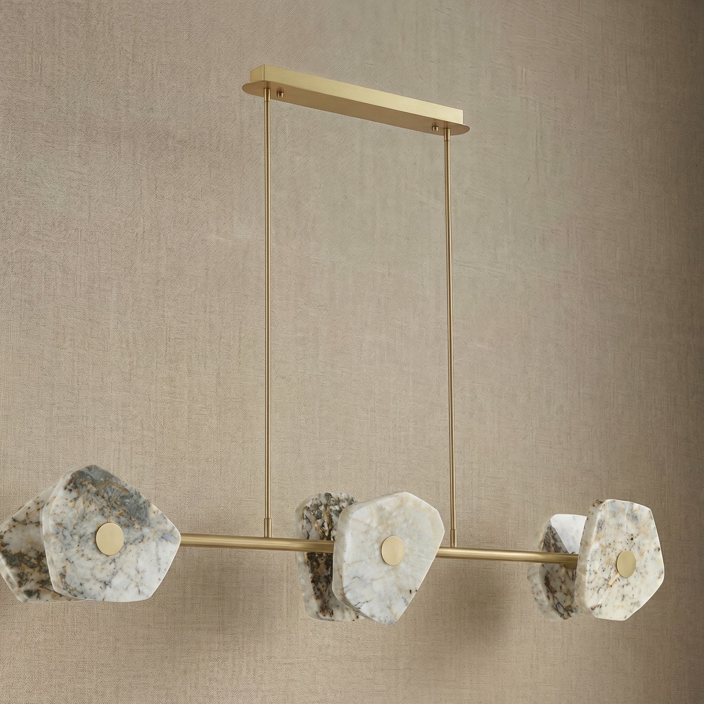 Elevate your space with the Yiosi High Luxury Natural Stone Pendant Light 39", a masterfully crafted pendant lamp featuring hardware, luxury stone construction with a gold finish. Each piece combines modern elegance with expert craftsmanship, creating a stunning focal point for any room.