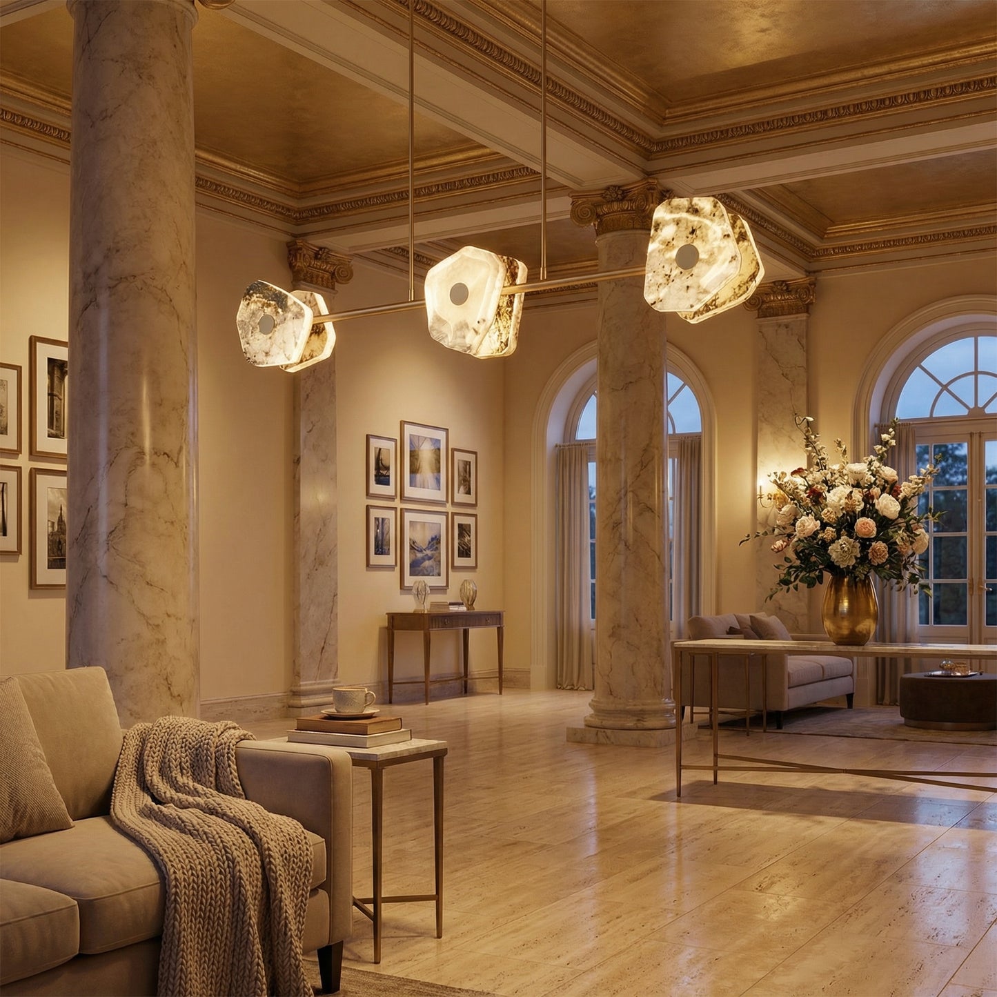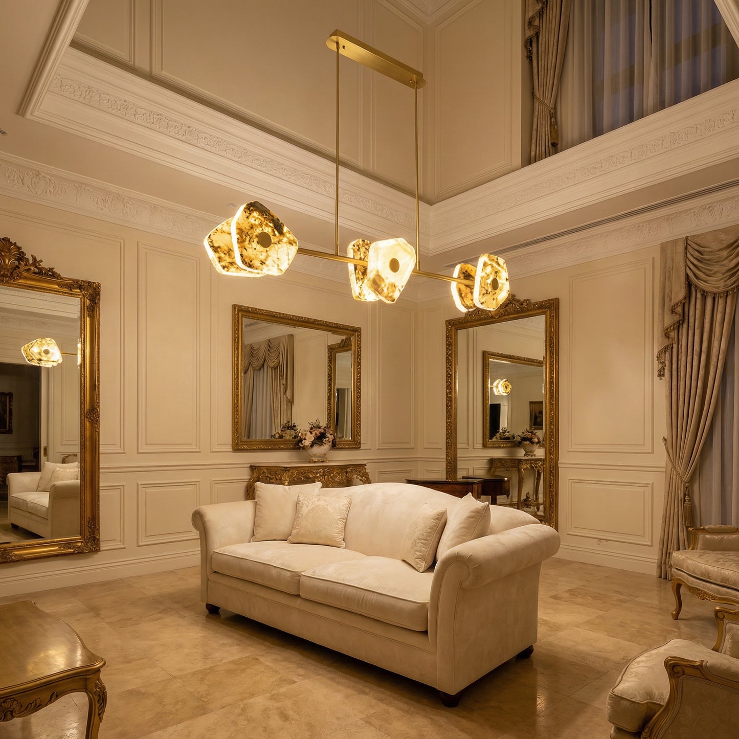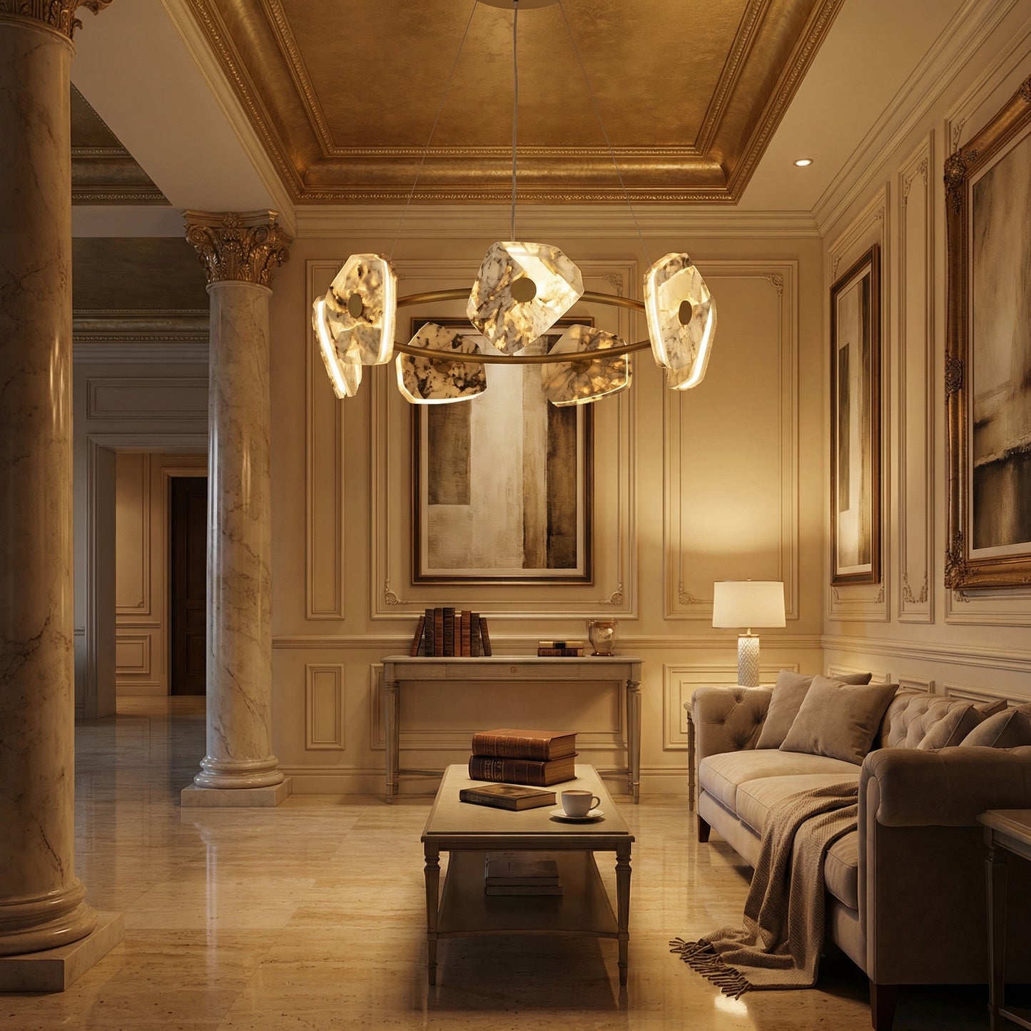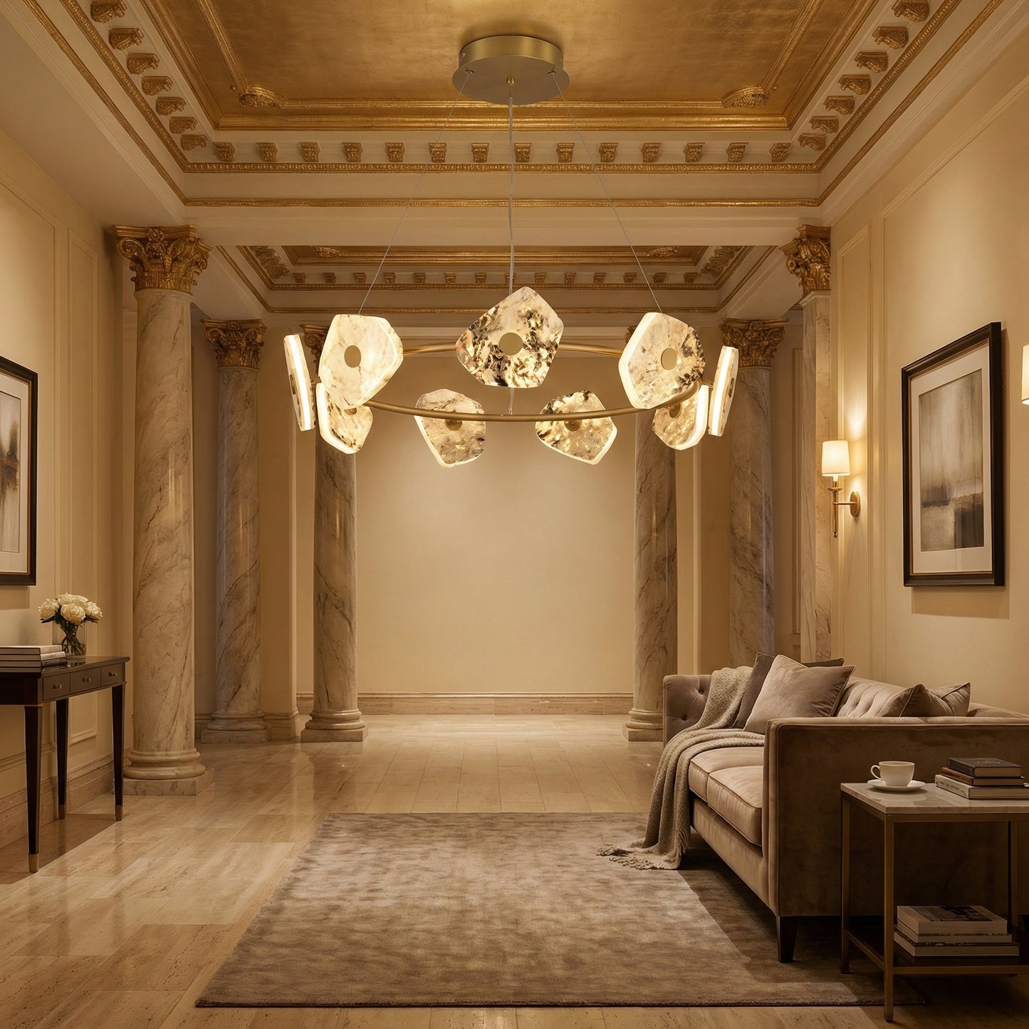 Elevate your space with the Yiosi High Luxury Natural Stone Pendant Light 39", a masterfully crafted pendant lamp featuring hardware, luxury stone construction with a gold finish. Each piece combines modern elegance with expert craftsmanship, creating a stunning focal point for any room.