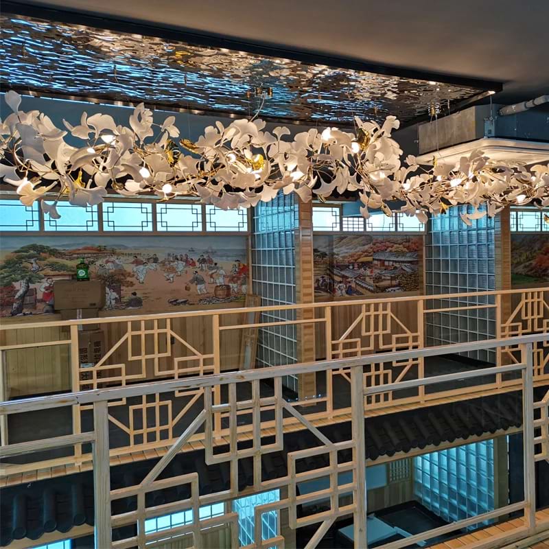 Featuring a luxurious overall design and advanced manufacturing technology, the Customize Gingko Chandelier showcases its opulence through exquisite ceramic petals adorning the metal lamp body. Immerse yourself in the perfect blend of lighting and nature with this bespoke installation, handcrafted with porcelain leaves. Experience the harmonious interplay of light and ceramic, creating a welcoming ambiance that promotes well-being. Beyond its functional purpose, this light sculpture defines its own striking appearance, eliciting awe as a mesmerizing piece of artwork. Like a living plant, it exudes a natural, dynamic energy that brings tranquility and vitality to any space. Working in tandem with the architectural and design vision, this installation is a symbol of harmony between man and nature.