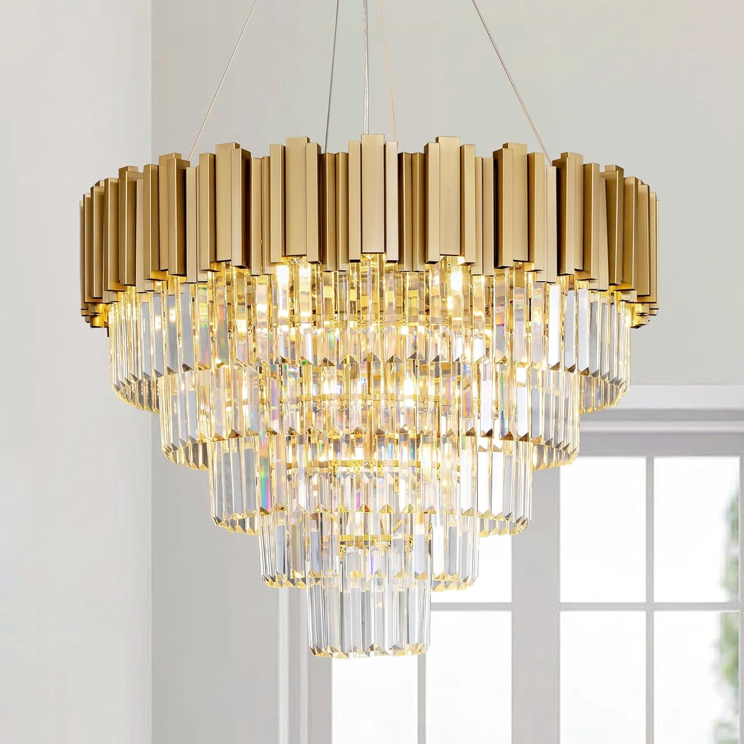 Premium K9 crystals paired with a sturdy matte gold metal frame. Expertly crafted to reflect light beautifully and provide lasting elegance.