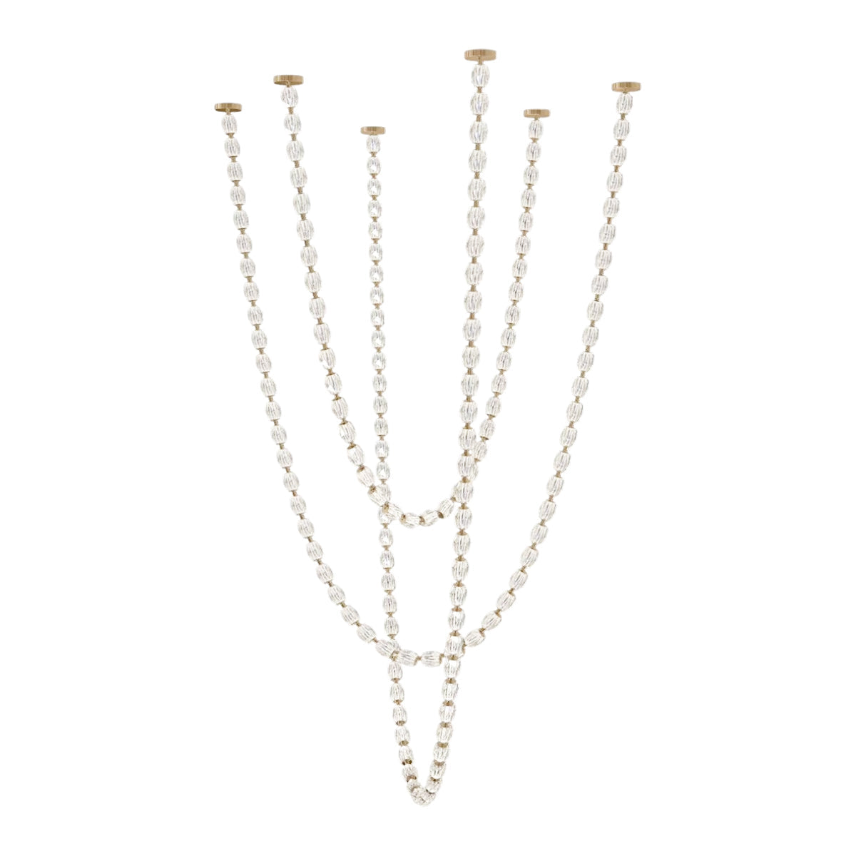 Crafted from durable iron and clear crystals, each bead is precision-cut and polished to maximize clarity and brilliance. The chrome metallic cuffs add a modern touch, making this chandelier both durable and elegant.