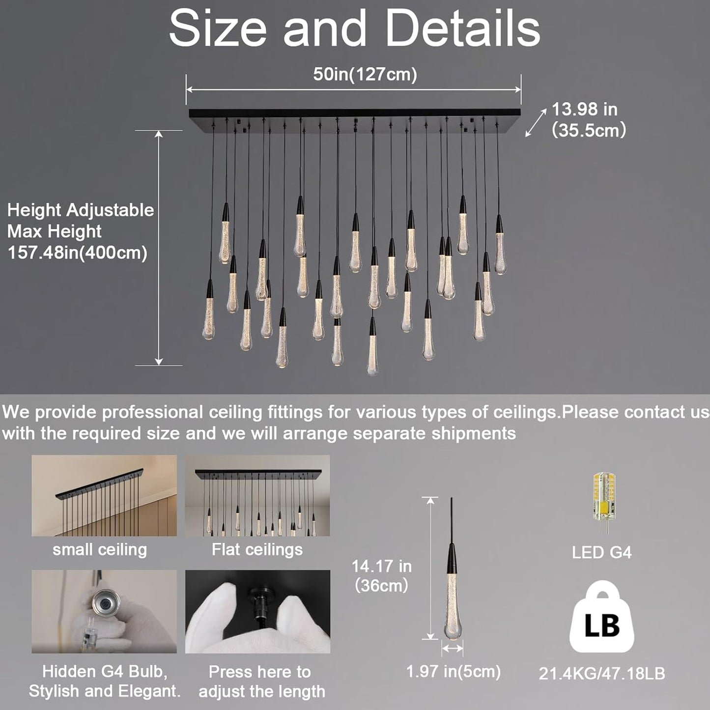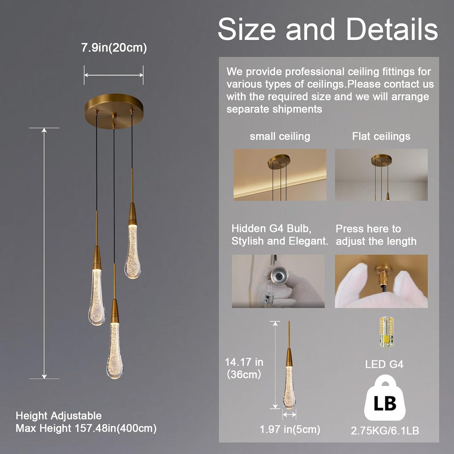 | Light Source | LED G4 Bulbs (Included) |