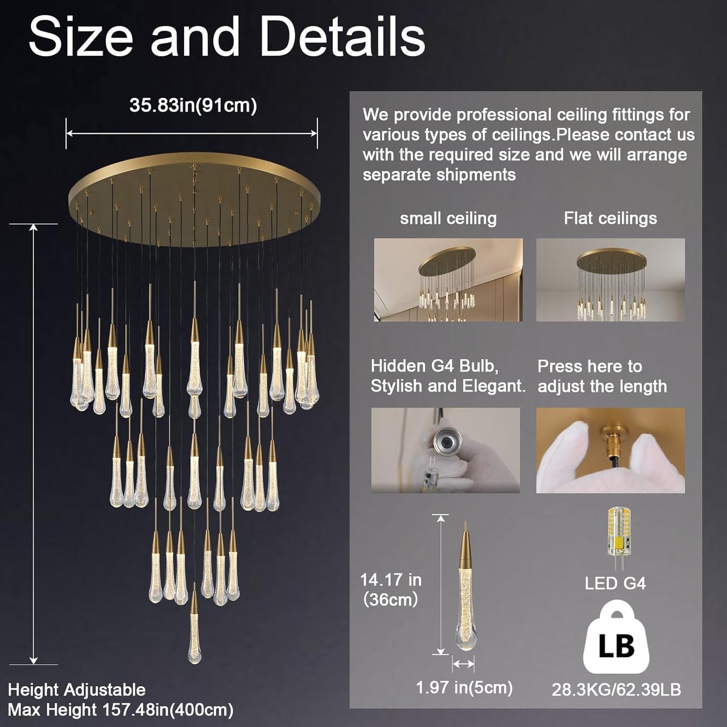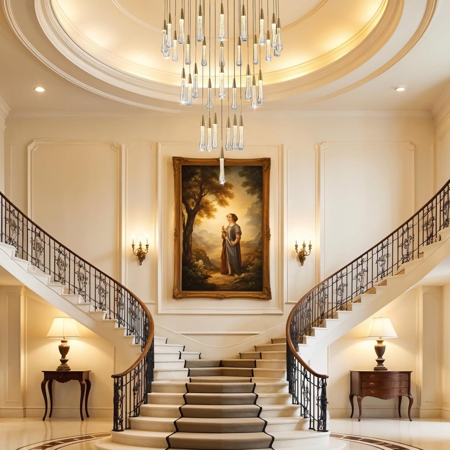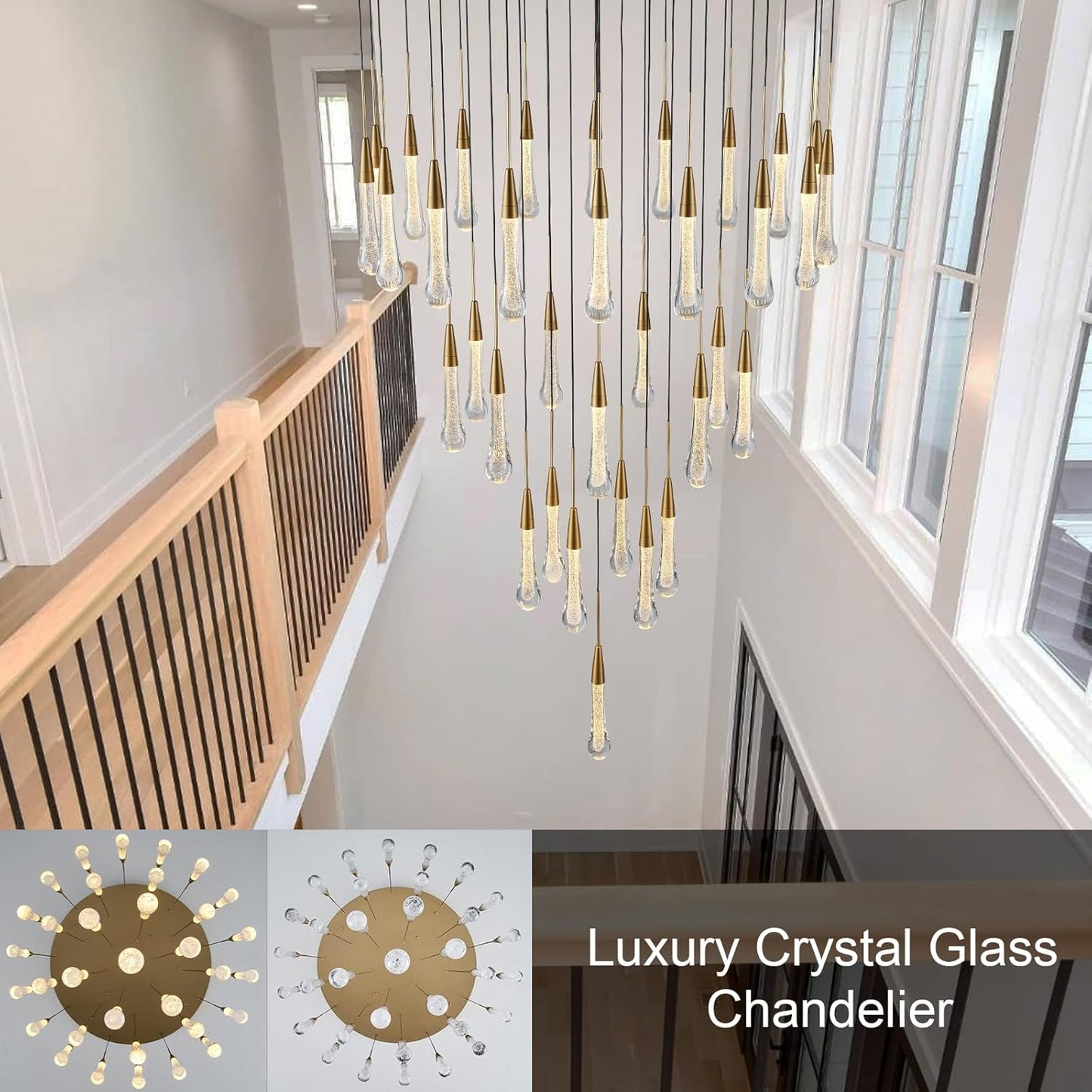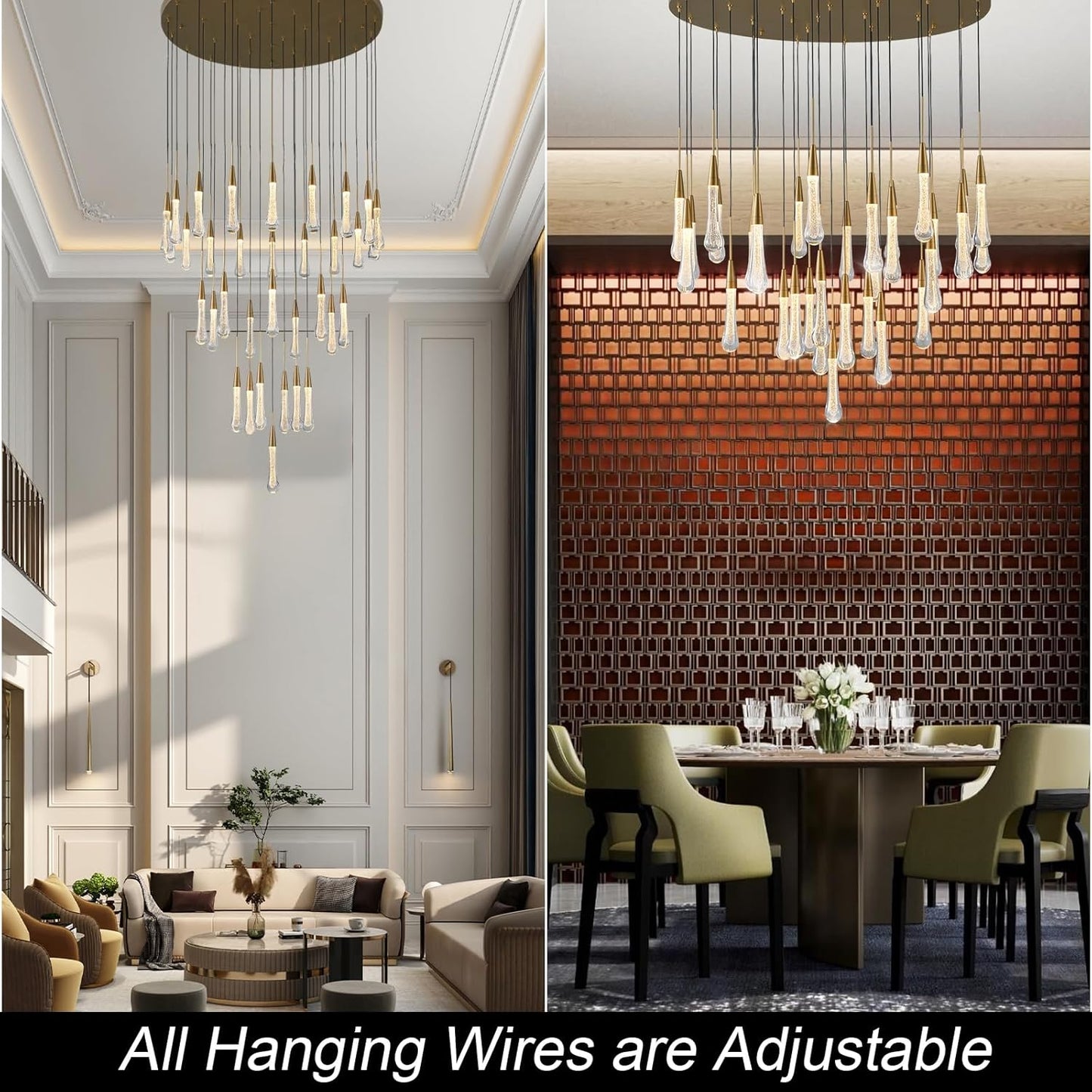 Ideal for staircases, entryways, dining rooms, or any high-ceiling area. Adjustable chain ensures versatile installation.