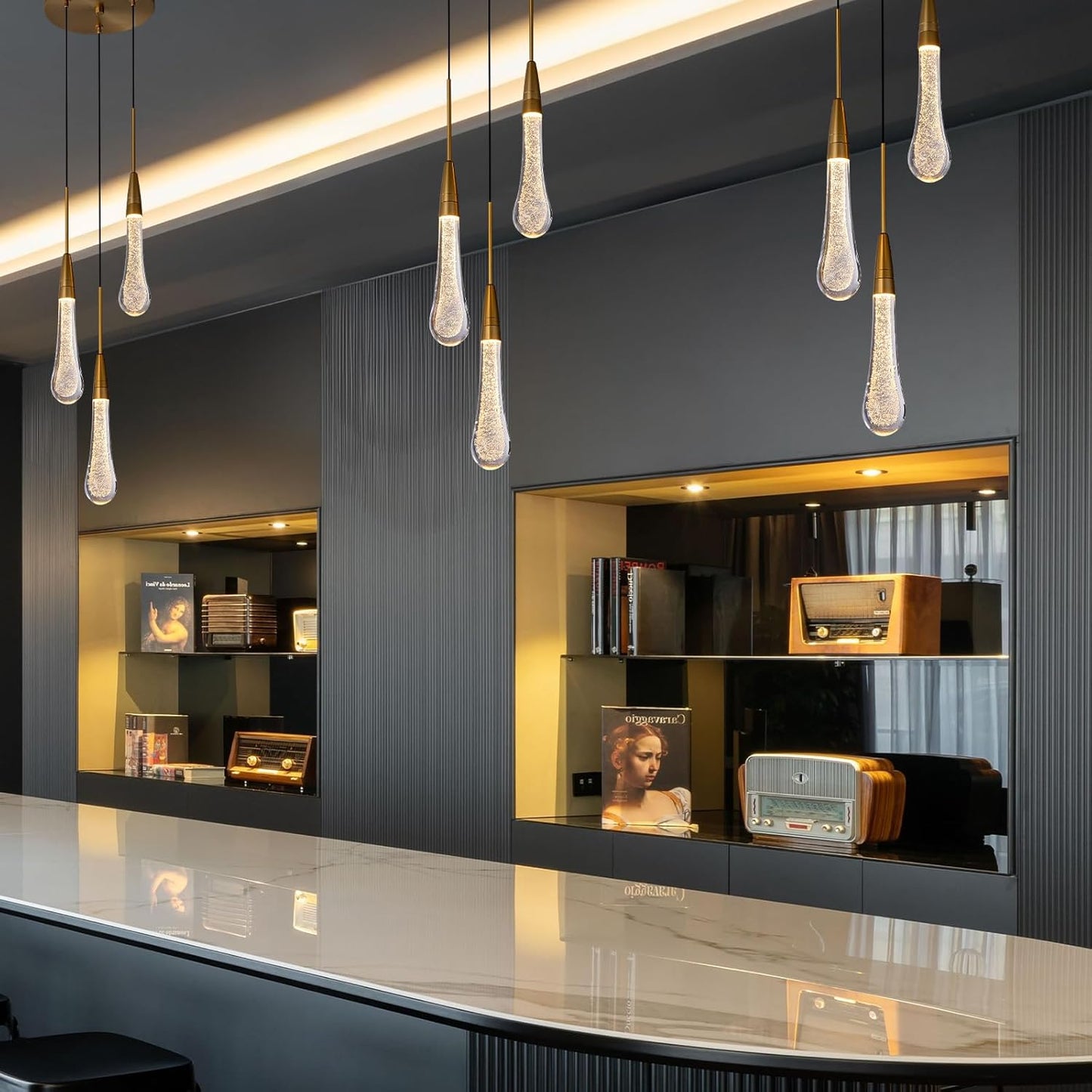 Modern raindrop glass design with dazzling glow