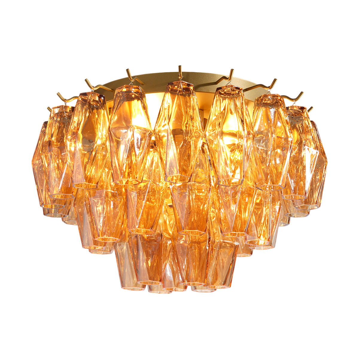Tiered Smoke Blown Glass Brass Chandeliers / Wall Lamp