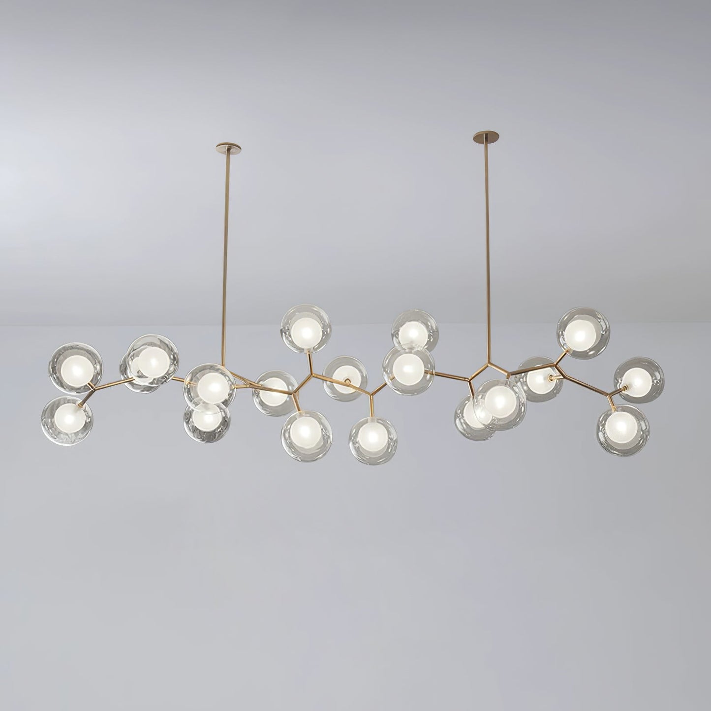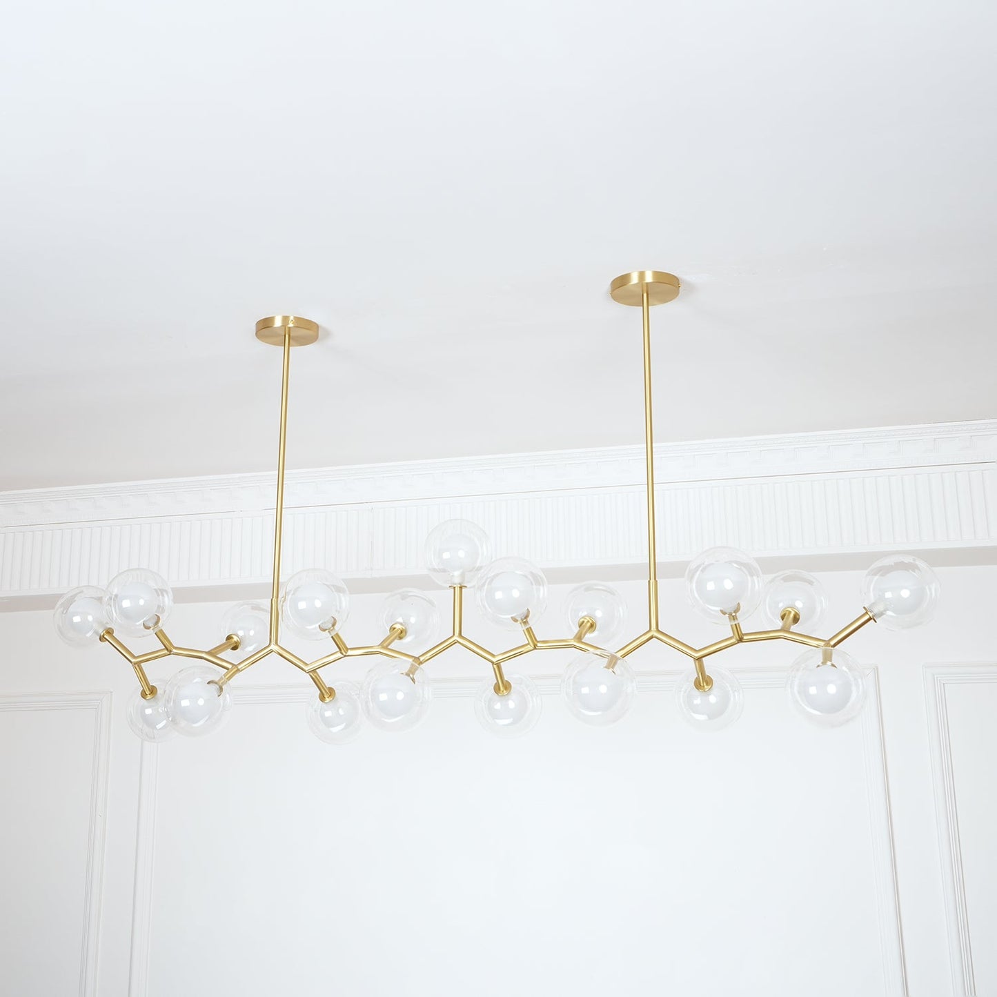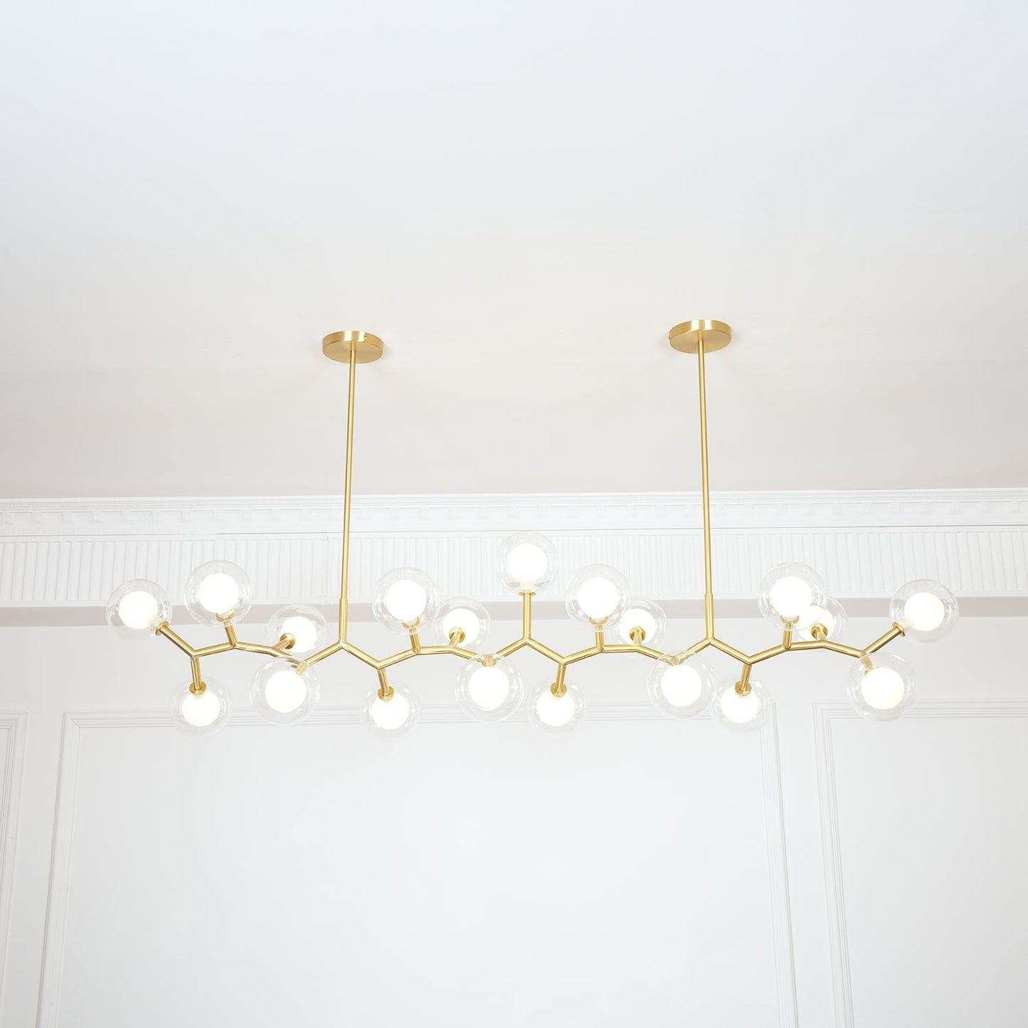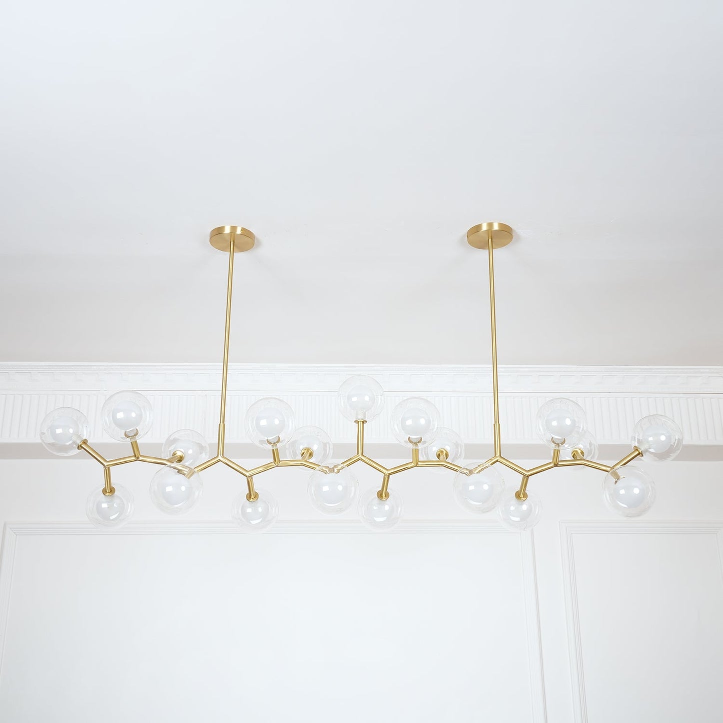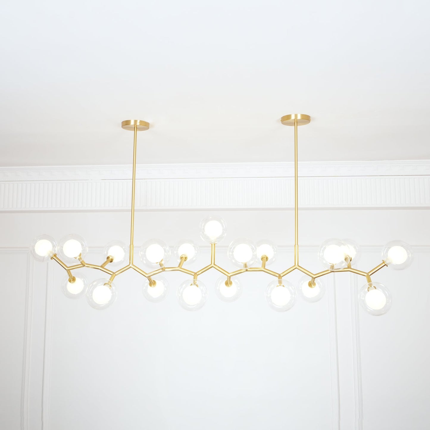 Introducing the Molecular Glass Chandelier by YIOSI, a captivating blend of modern design and scientific elegance. Inspired by the beauty of molecular structures, this chandelier features a delicate network of glass globes seamlessly connected by sleek golden branches. Each glass sphere emits a soft, ambient light, creating a warm and inviting atmosphere in any space. Whether it’s for your living room, dining room, or any stylish setting, this chandelier not only serves as a lighting fixture but also as a statement piece of contemporary art.
