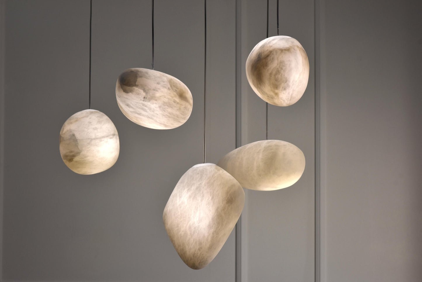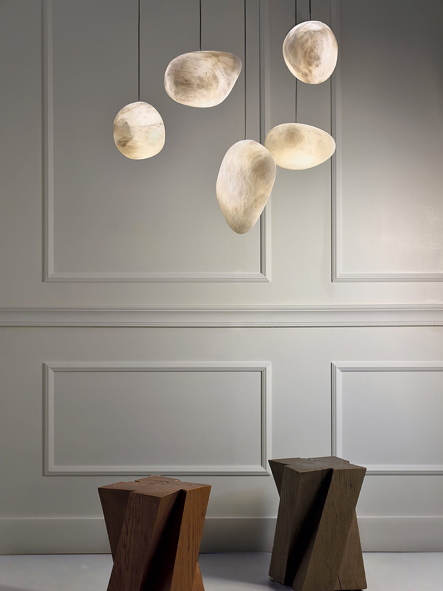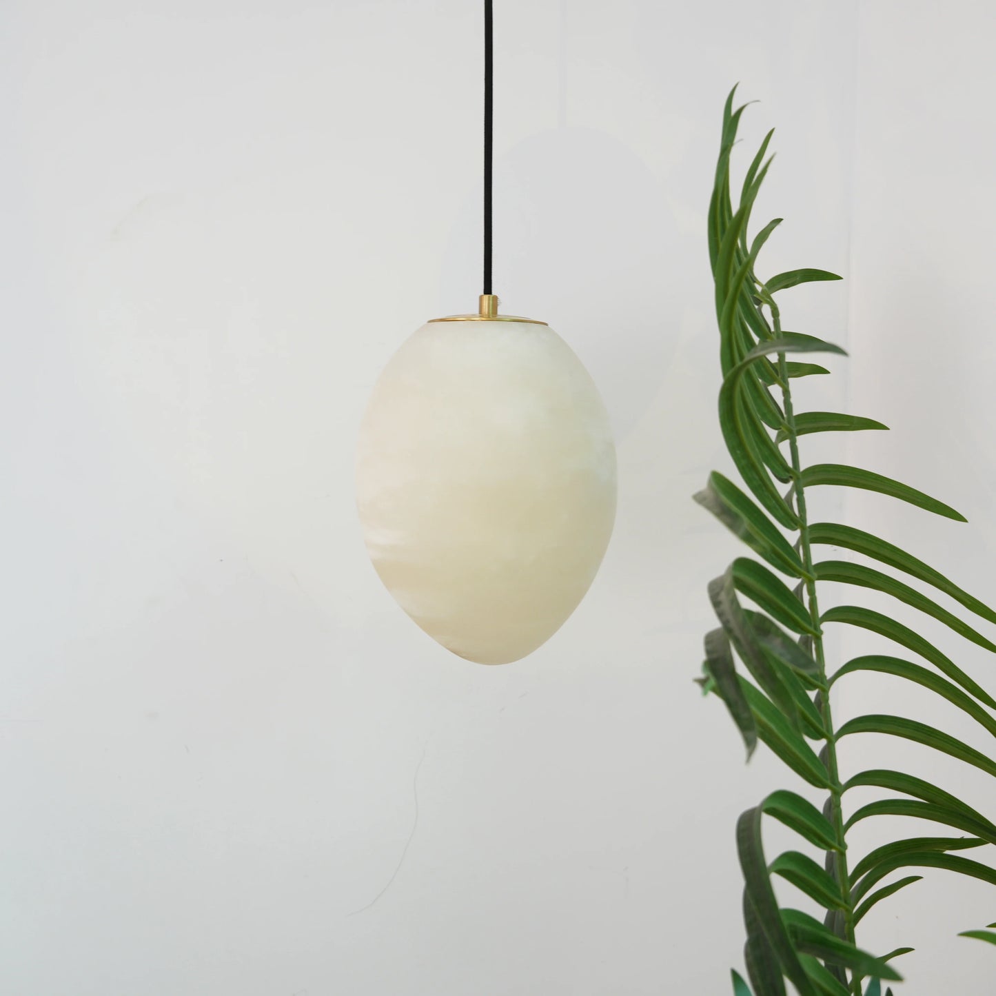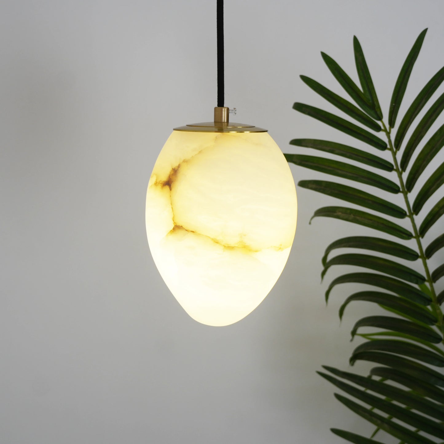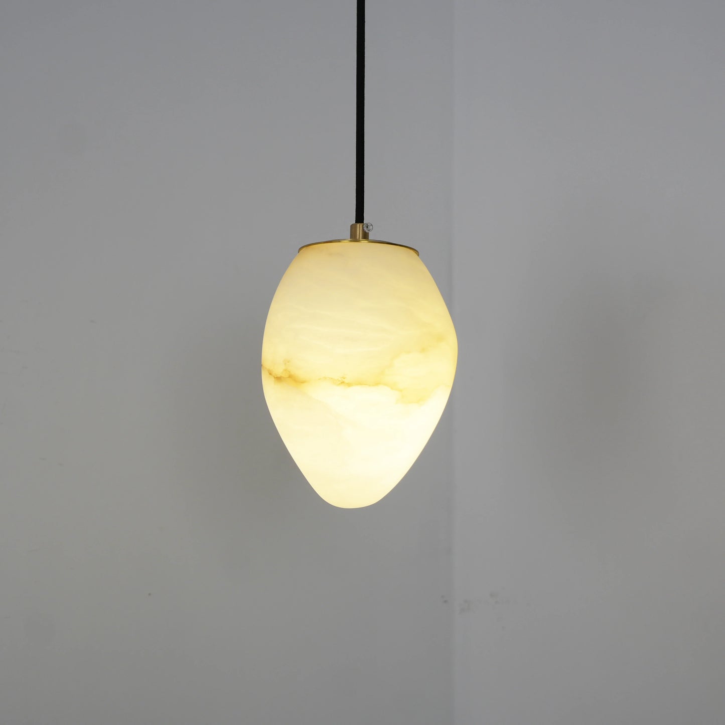 Hand‑Chiseled Galet Alabaster Brass Pendant Lamp – Sculptural Shine